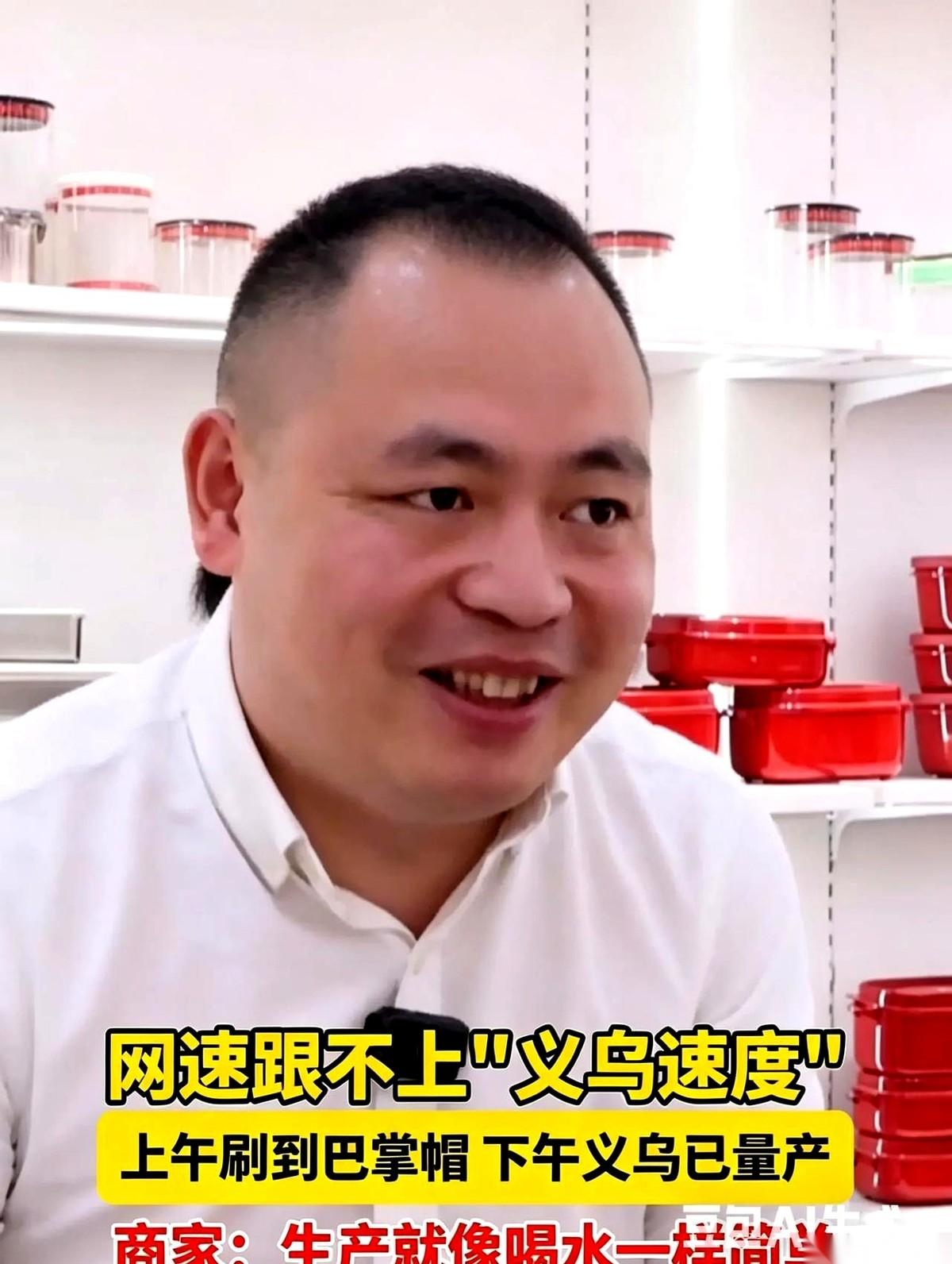 事情是这样的。上午,义乌一个老板刷手机,就划到了这条视频。他没觉着多惊奇,手指直接在屏幕上敲了几个字发给设计部:“这个东西,搞一下。”