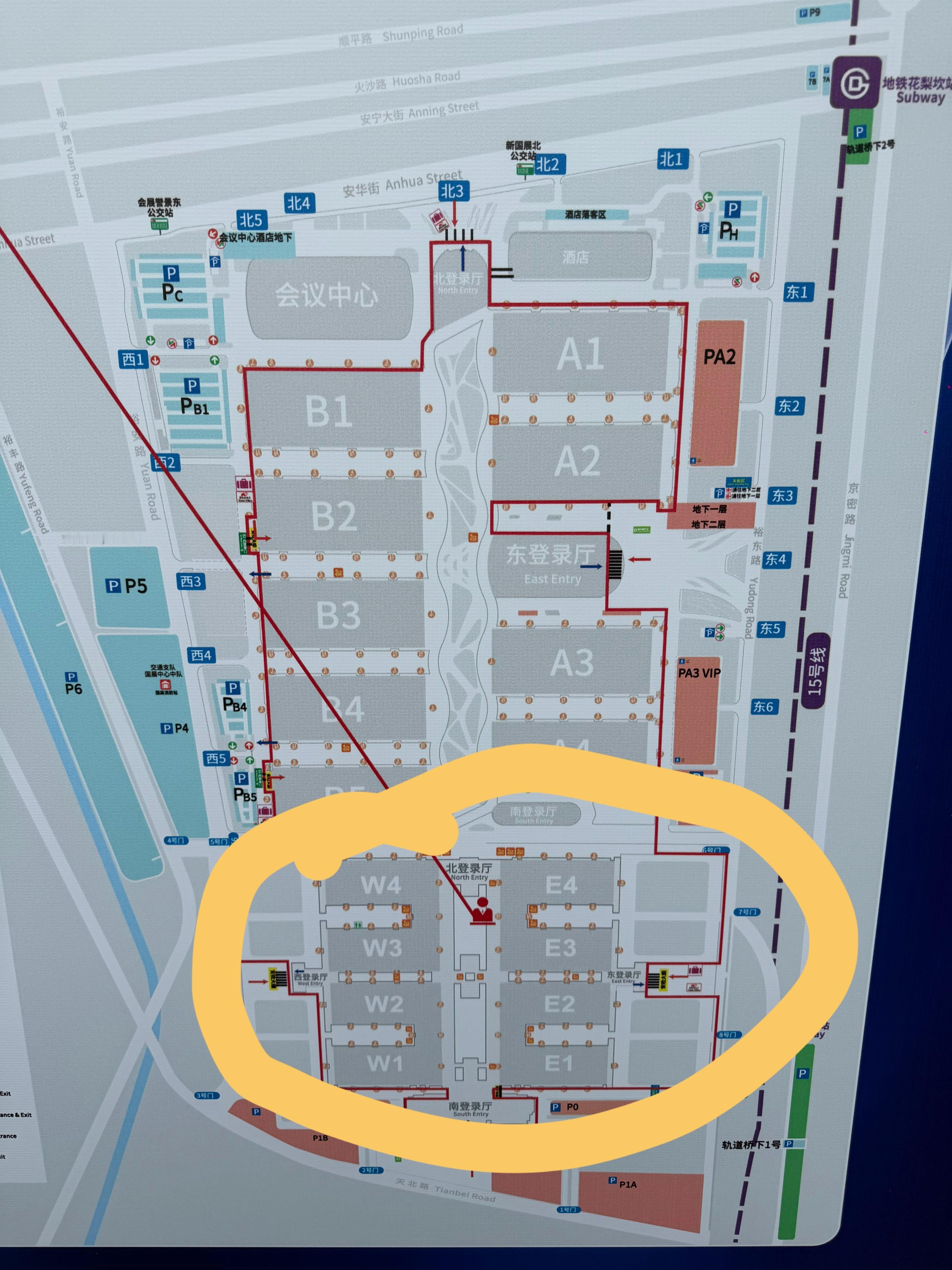 今年的北京车展为啥全球是最大规模?图二黄色圈起来的部分是以前的展馆面积今年直接新