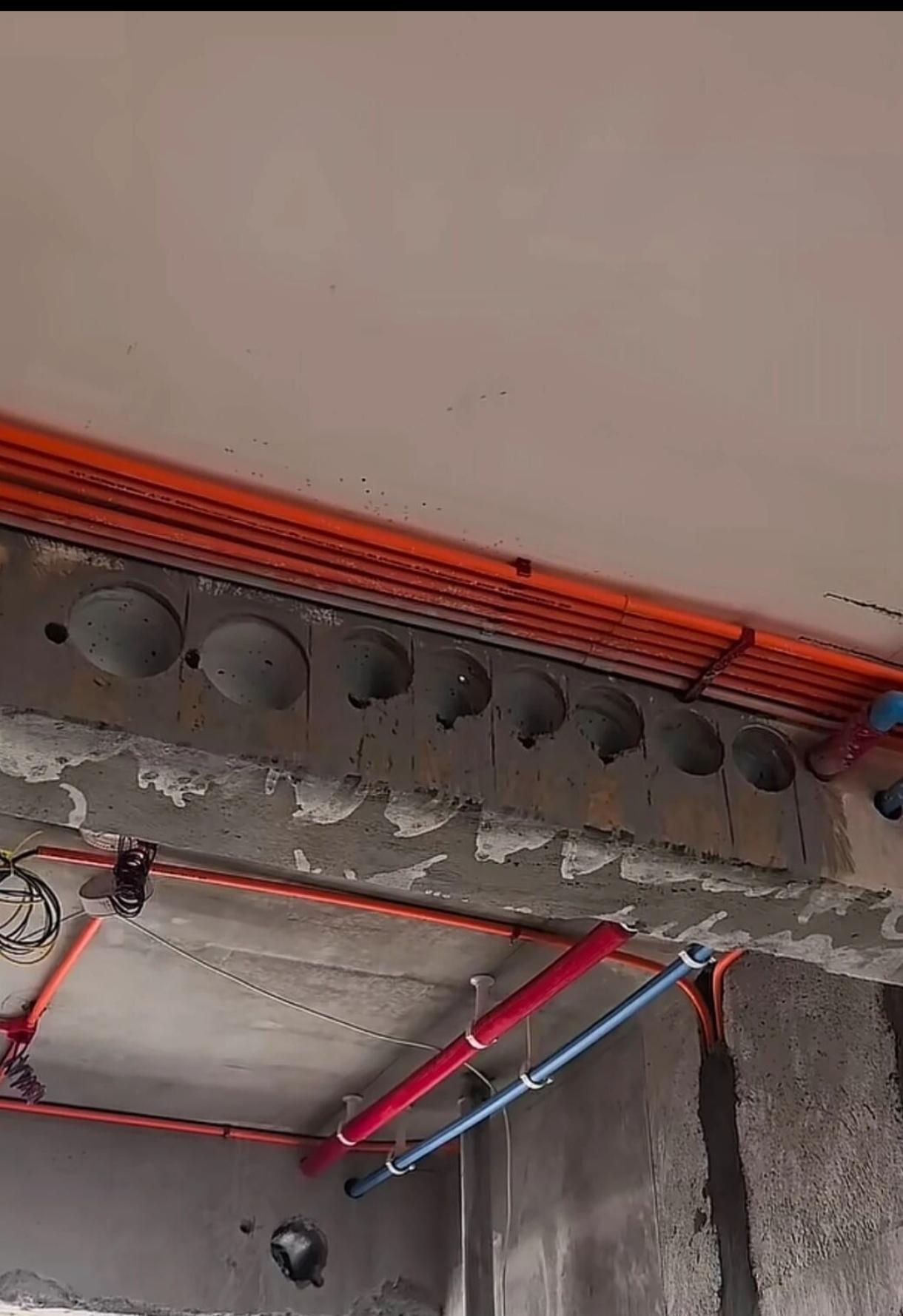 这个梁看着堪忧啊,打这么大孔,也太乱来了。把大梁打的千疮百孔!你们物业公司不天天来监工吗?