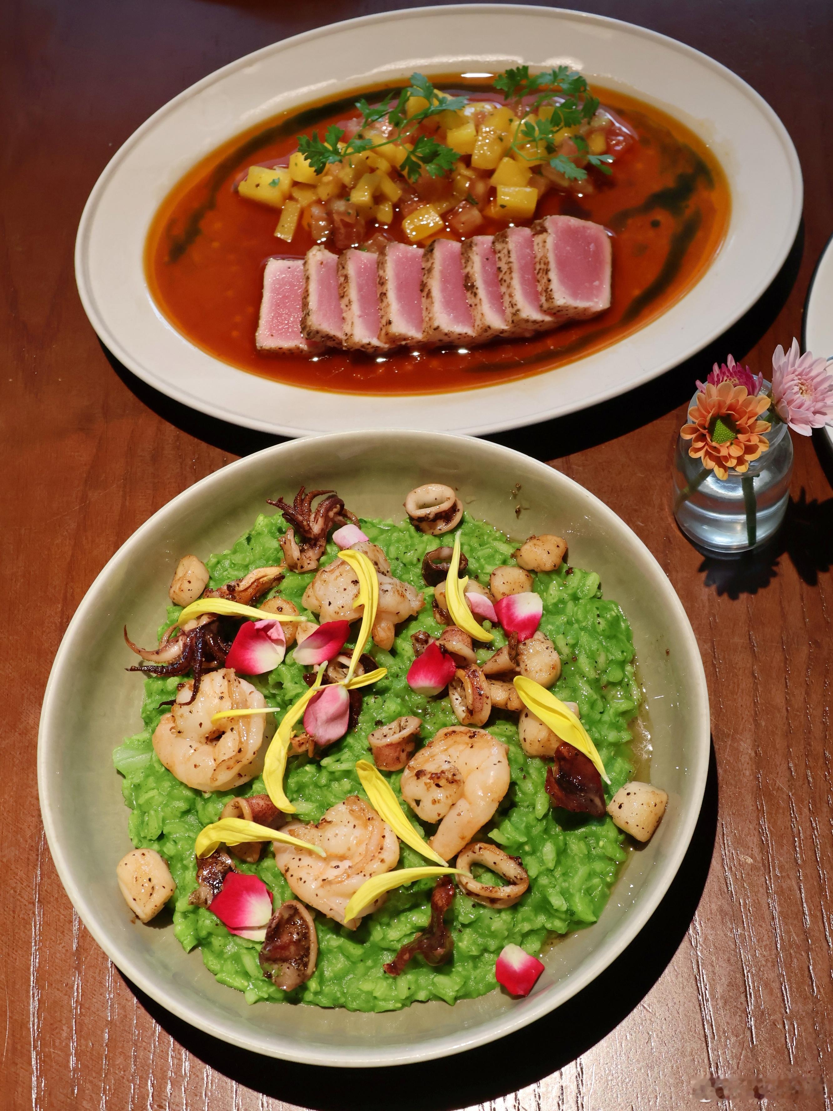 ✨烟熏牛肉芝士可乐饼🥠一口咬下get很丰富的口感,酥炸虾饼配芒果青瓜沙拉🍤香脆和清爽搭在一起,味道真的好奇💥妙啊~香煎吞拿鱼搭配柚子酱油和芒果莎莎,口感层次超丰富!意大利芦笋烩饭裹满贝柱粒,鲜到舔盘~饭后再来份荷兰松饼配香草雪糕,甜滋滋超治💕愈~✨饮品颜值高还好喝,拍照巨出片!周末假期约会聚餐👨👩👦👦来这里真的太合适啦✨ .🧀 Over Easy by Senses(四海城店)📍南村镇汉溪大道东390号四海城商业广场东区LG1层1428号铺.广州美食 广州探店 漂亮饭 约会餐厅 发现宝藏出片点 广州约会 广州美食