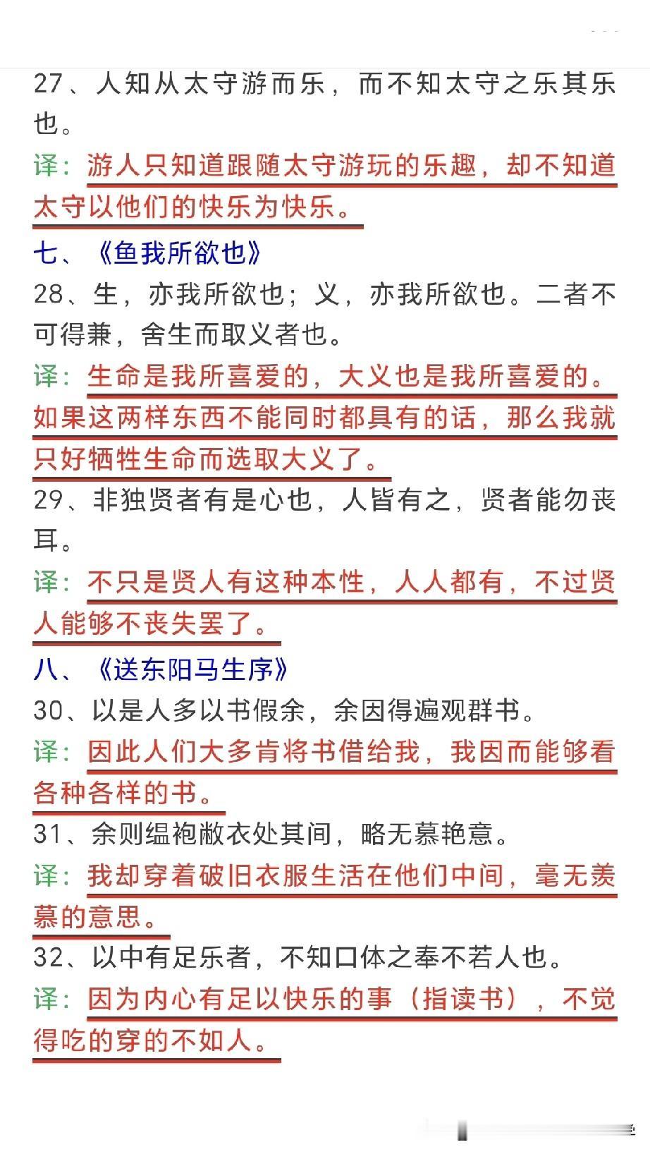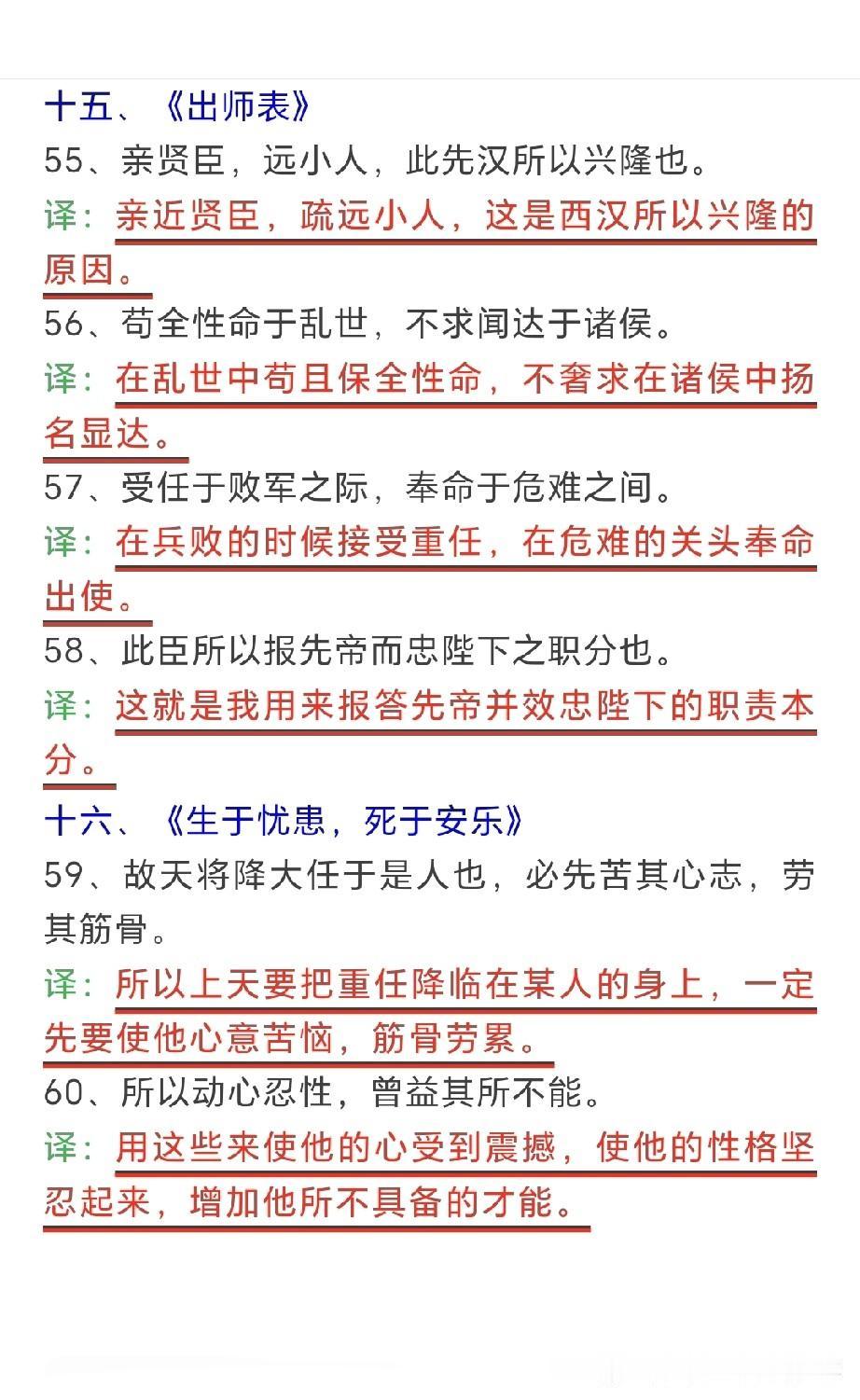 2026中考语文重点文言文名句翻译60道(可打印)中考语文[话题]
