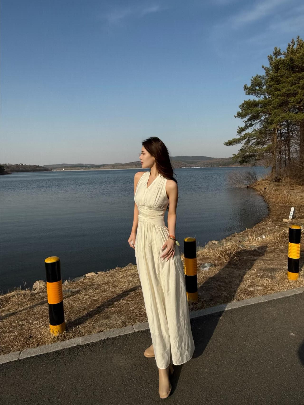 这样穿太优雅了!轻盈飘逸的雪纺长裙、碎花半裙和温柔挂脖上衣,搭配草编包与草帽,