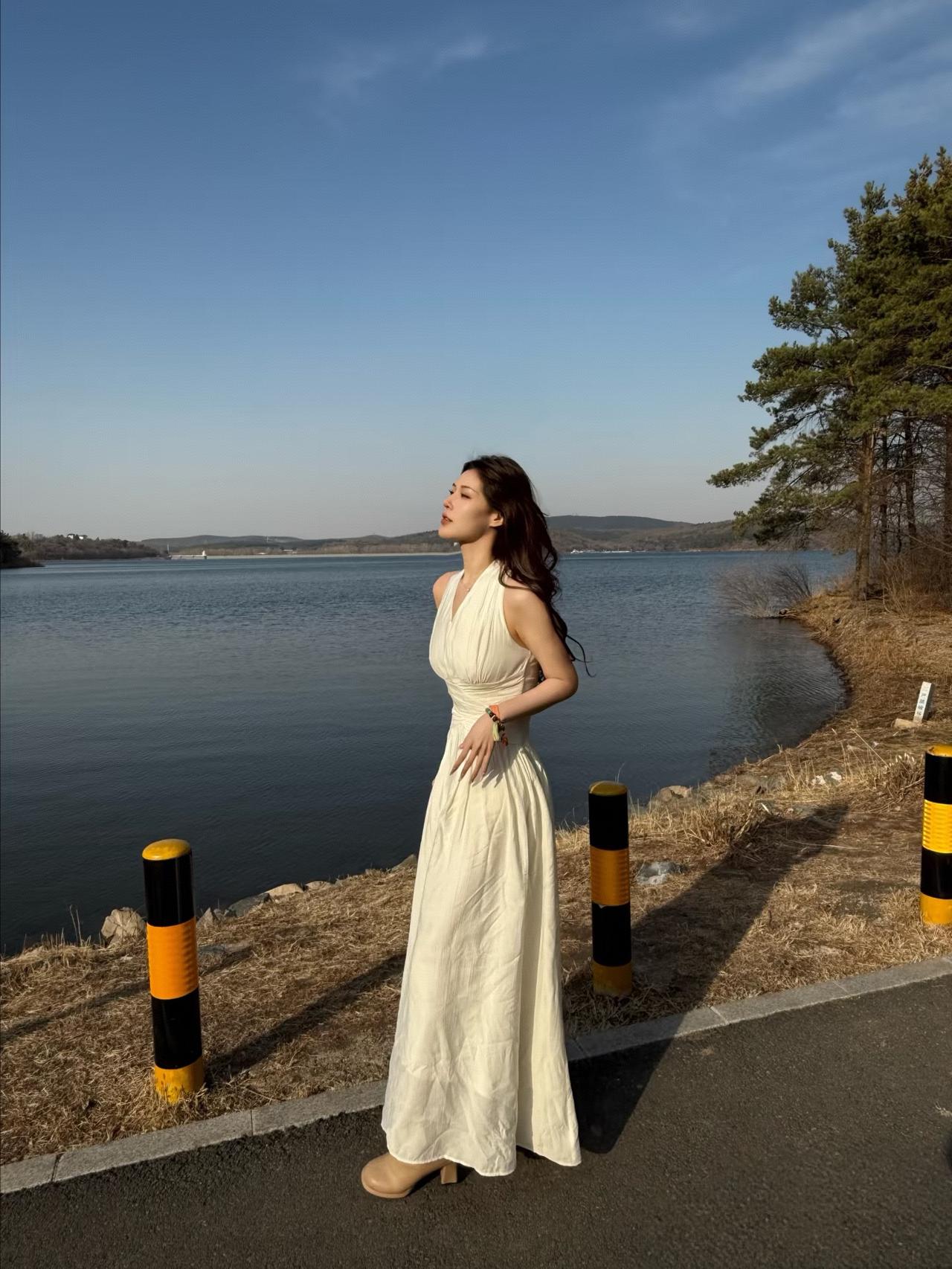 太喜欢高圆圆这个造型了,白衬衫配白裙优雅又温柔!亚麻白衬衫松弛透气,腰间细腰带
