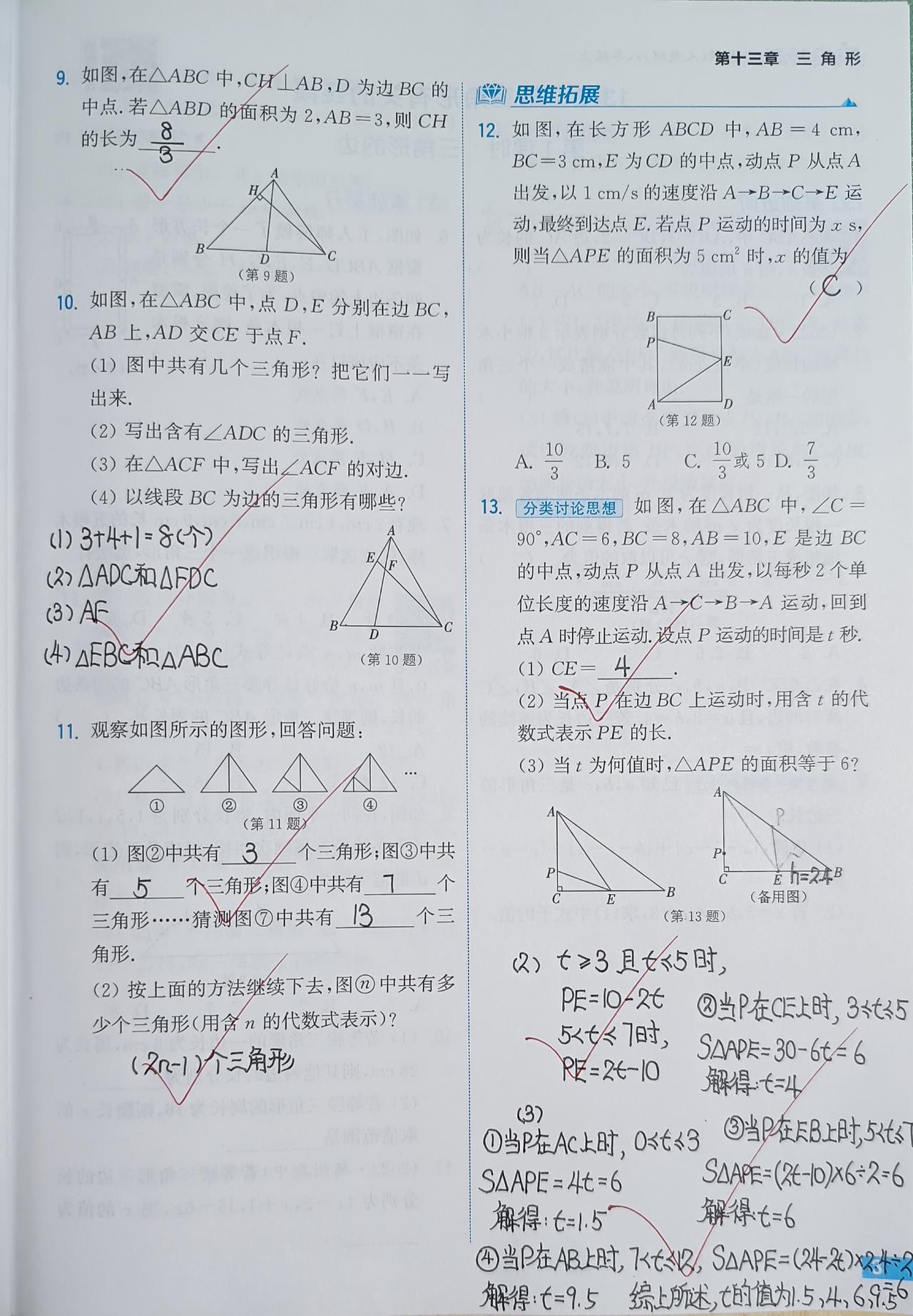 🔹七下并没做完,第七章“平行线”还在缓慢进行中(其余章节全部做完)。才做完的1课时的2页是用了三个工作日的晚上。今晚新做1课时肯定做不完(不是时间不够,是要保证劳逸结合),做一半,剩一半给明天时间充足的周末有点浪费,索性开始做八上[奸笑]这两天我已经做了几个课时,不同于七上七下,那时候我只挑“思维拓展”和“专题”来做,八上我老老实实每一题都做[大金牙]所以有数,这一章比较简单。