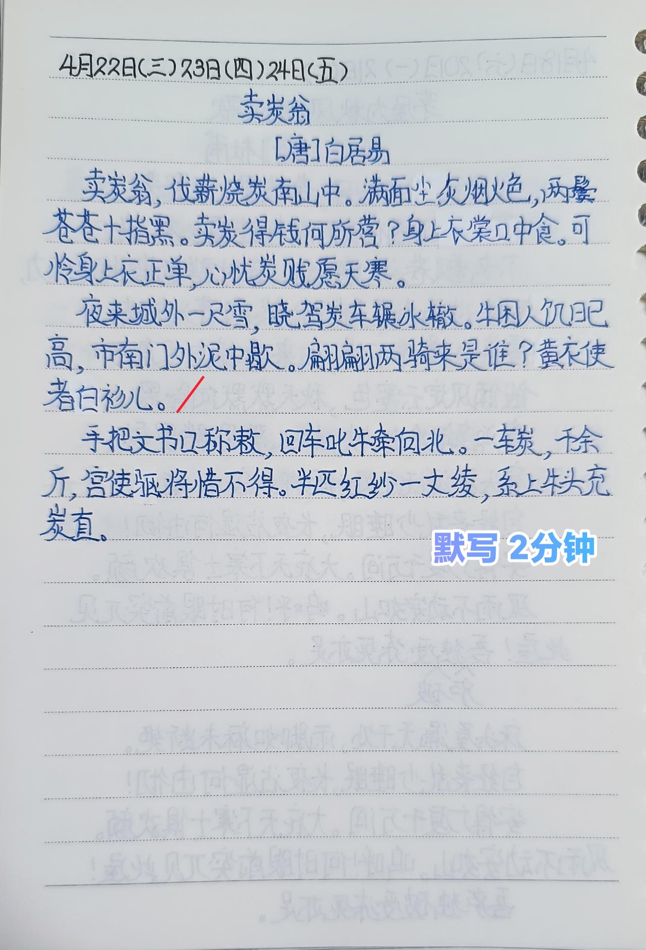 🔹2021年5月5日分3天背完《卖炭翁》,至今第25次复习