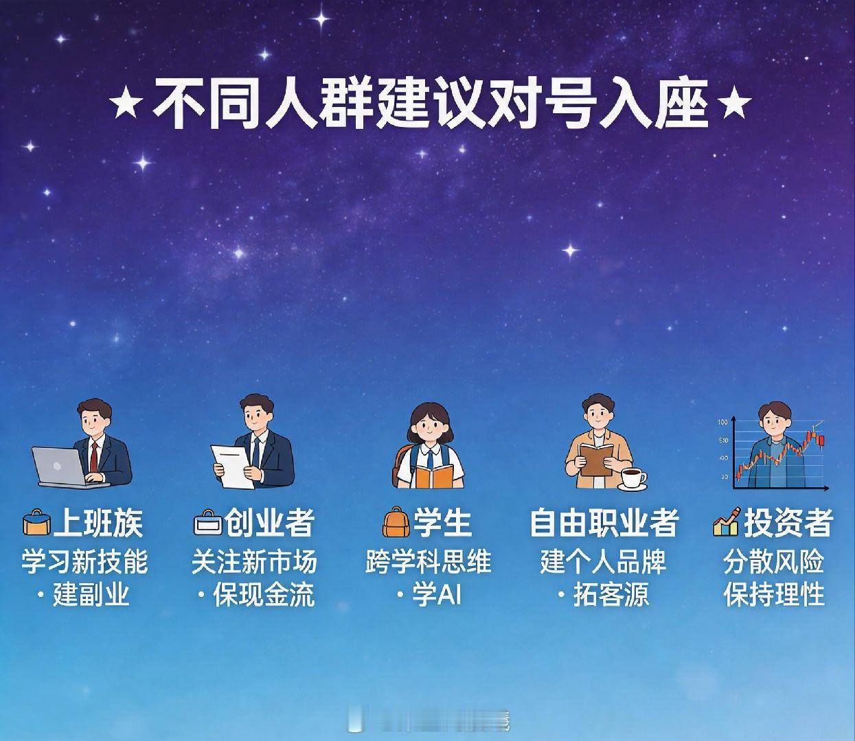 - 上班族、创业者、学生、自由职业者、投资者