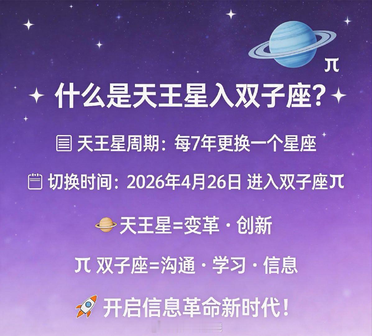 一、天王星入双子座的核心影响- 天王星×双子座 = 信息革命时代- AI、科技、