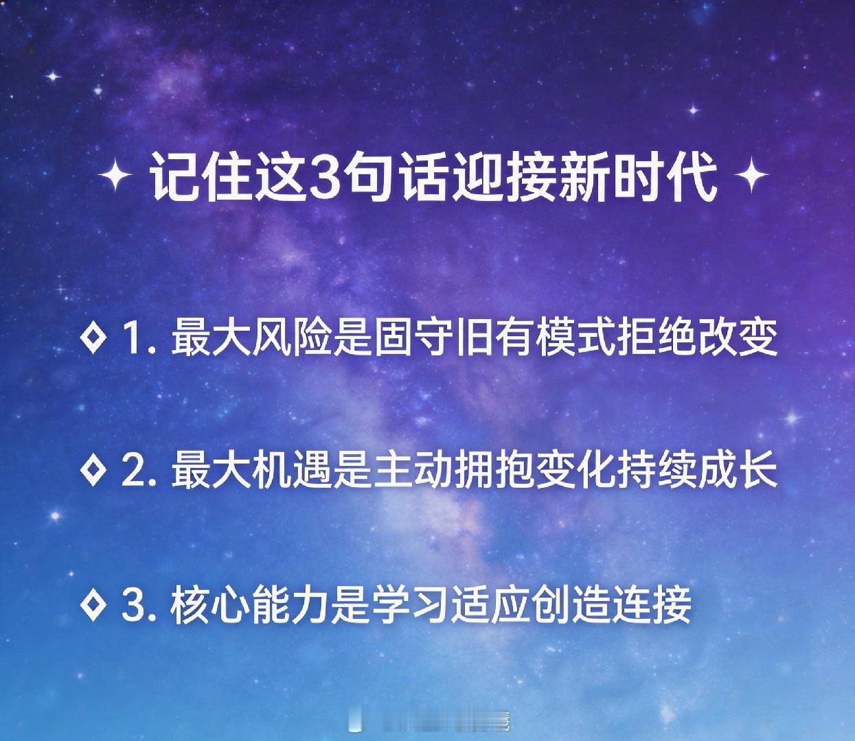 - 最大风险:固守旧有模式- 最大机遇:主动拥抱变化- 核心能力:学习、适应、创造、连接