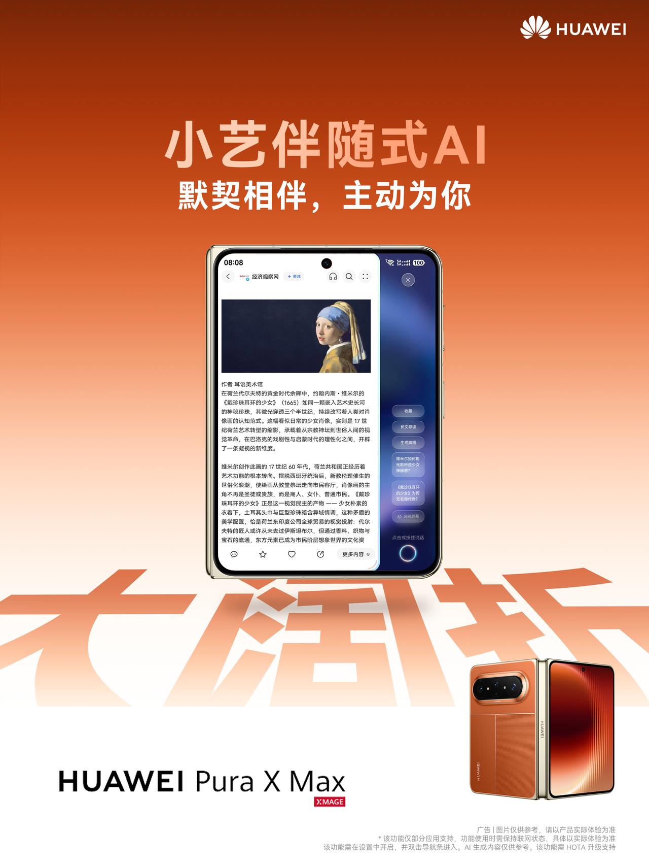 为什么它值得抢?首先看形态,行业首创的“大阔折”设计,完美复刻A4纸√2:1的黄金比例,无论是阅读文档还是分屏办公,这种“内外双阔”的体验都是前所未有的。其次看智慧,首发AI灵感妙创功能,打通全链路创作自由;更有小艺伴随式AI,像私人助理一样主动提供服务,覆盖生活工作全场景。