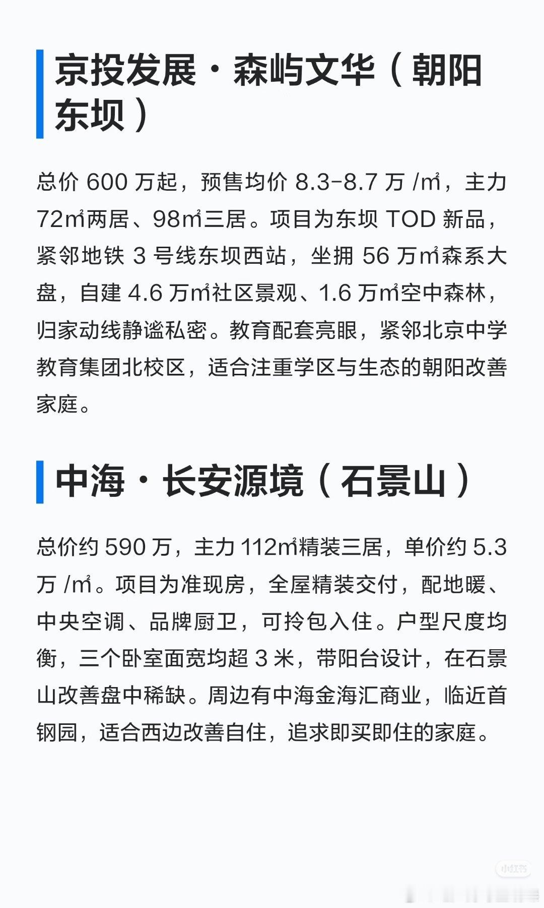 【600万预算,应该在北京看哪些改善?】2026年,北京新房市场面临彻底回暖,600万的预算可以覆盖朝阳、石景山、通州、大兴等板块的优质改善新盘,兼顾通勤、配套与居住品质。京投发展・森屿文华(朝阳东坝)总价600万起,预售均价8.3-8.7万/㎡,主力72㎡两居、98㎡三居。项目为东坝TOD新品,紧邻地铁3号线东坝西站。坐拥 56万㎡森系大盘,自建 4.6万㎡社区景观、1.6万㎡空中森林,归家动线静谧私密。教育配套亮眼,紧邻北京中学教育集团北校区,适合注重学区与生态的朝阳改善家庭……地产酵母北京买房改善天花板买房必看买房避坑新手买房科技住宅新盘新房推荐 北京