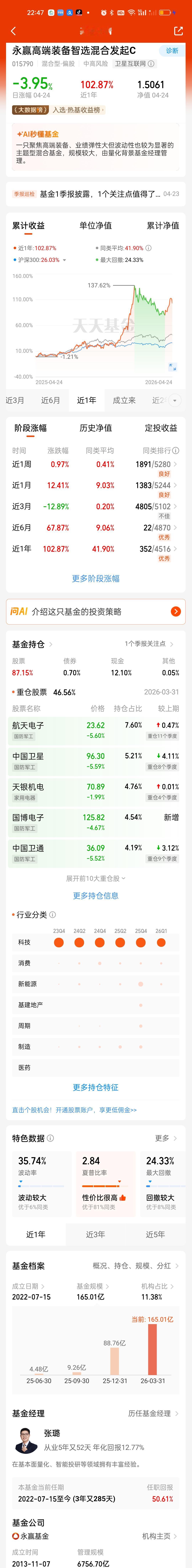 商业航天板块永赢高端装备智选这次调仓规模几乎翻倍。从5.61亿到11.35亿到97.65亿再到最新的189.31亿。增长速度太快了。这次调仓新增了4只个股,国博电子,中科星图,乾照光电,烽火通信。调出了上海港湾,西部材料,上海瀚讯,顺灏股份。