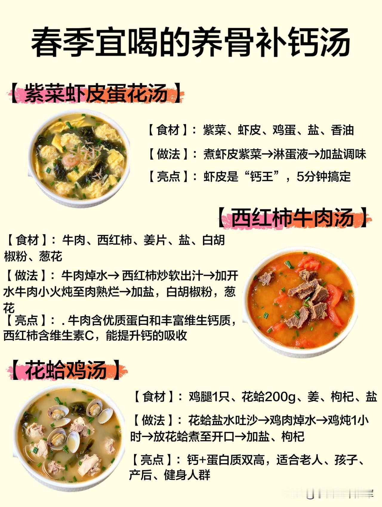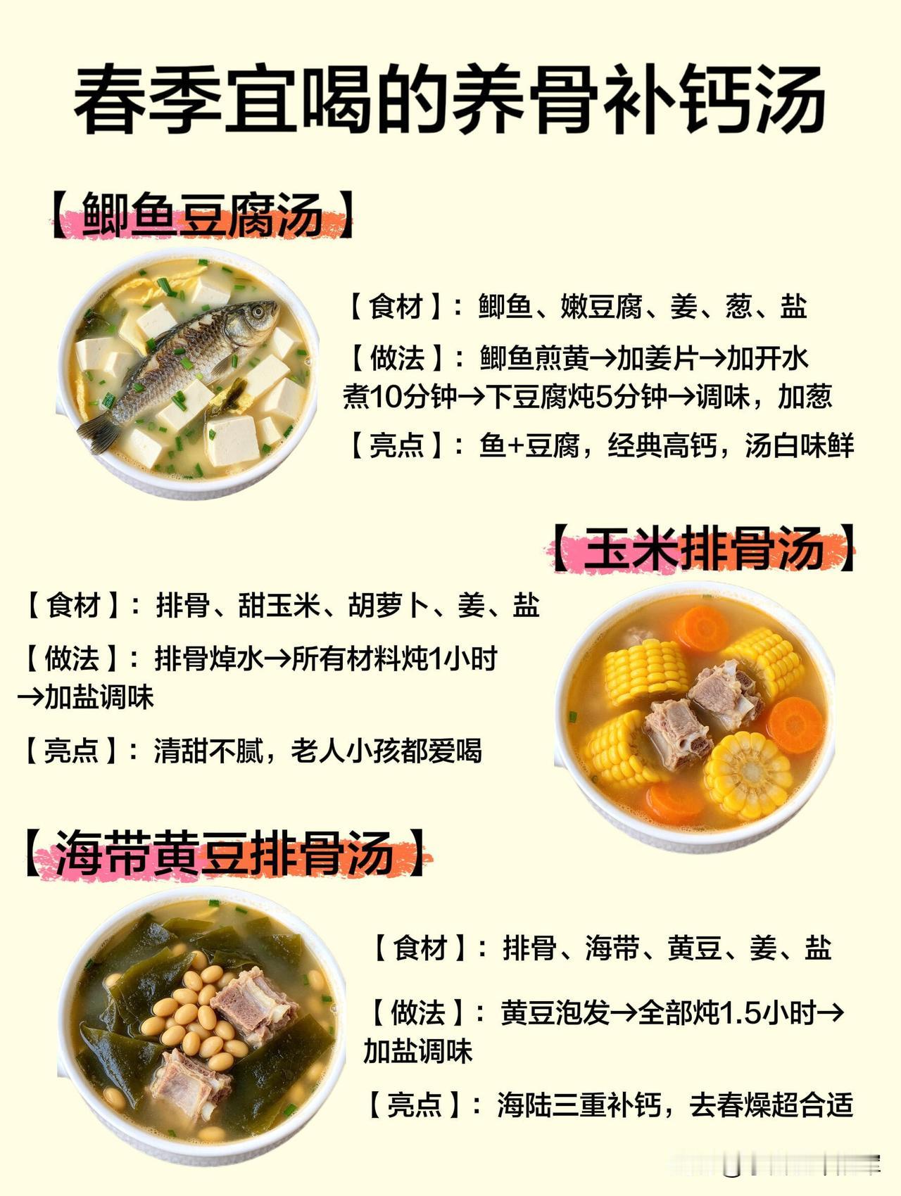 这些汤都很家常,做法也不复杂,春天换着做给家人喝,养骨补钙,吃出好状态。