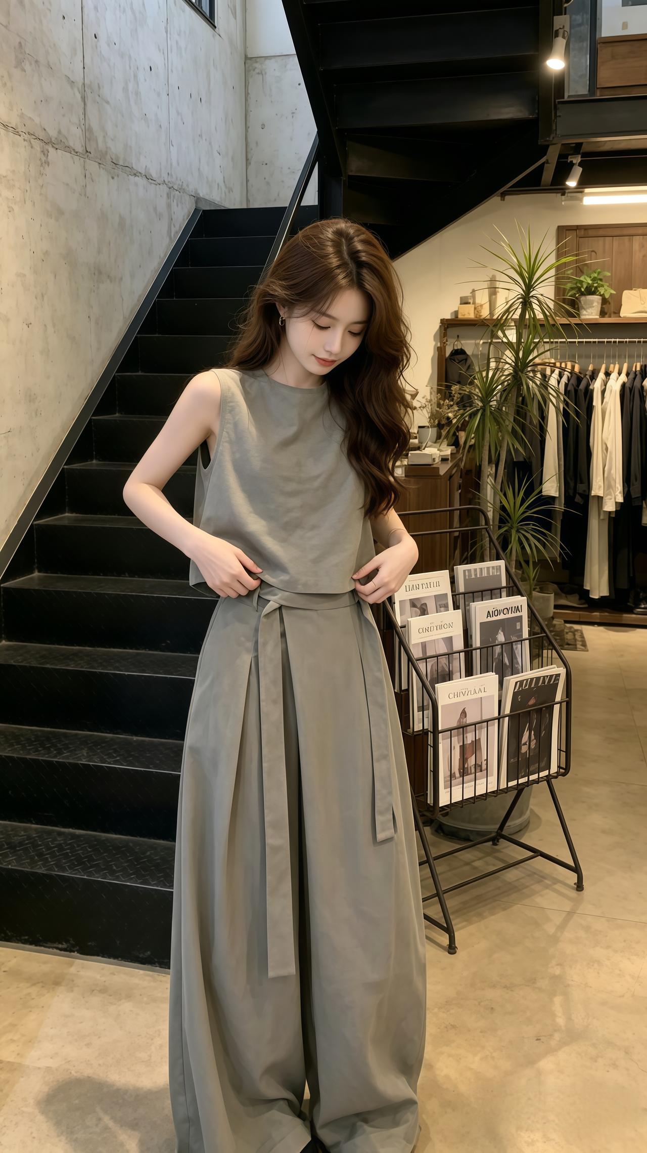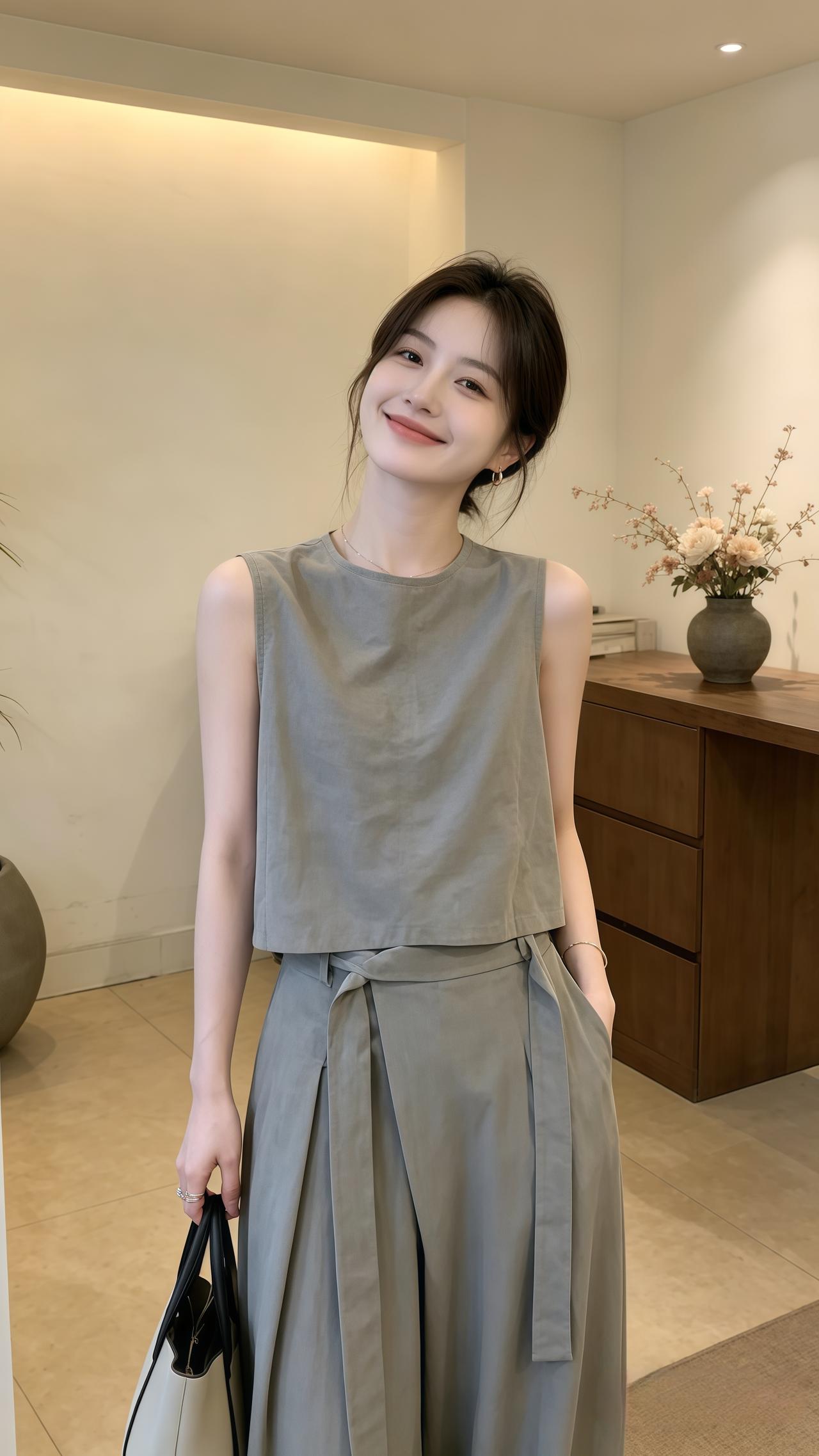 无袖上衣阔腿裤套装 盛夏高品极简套装 高级感无袖套装 韩系穿搭穿搭