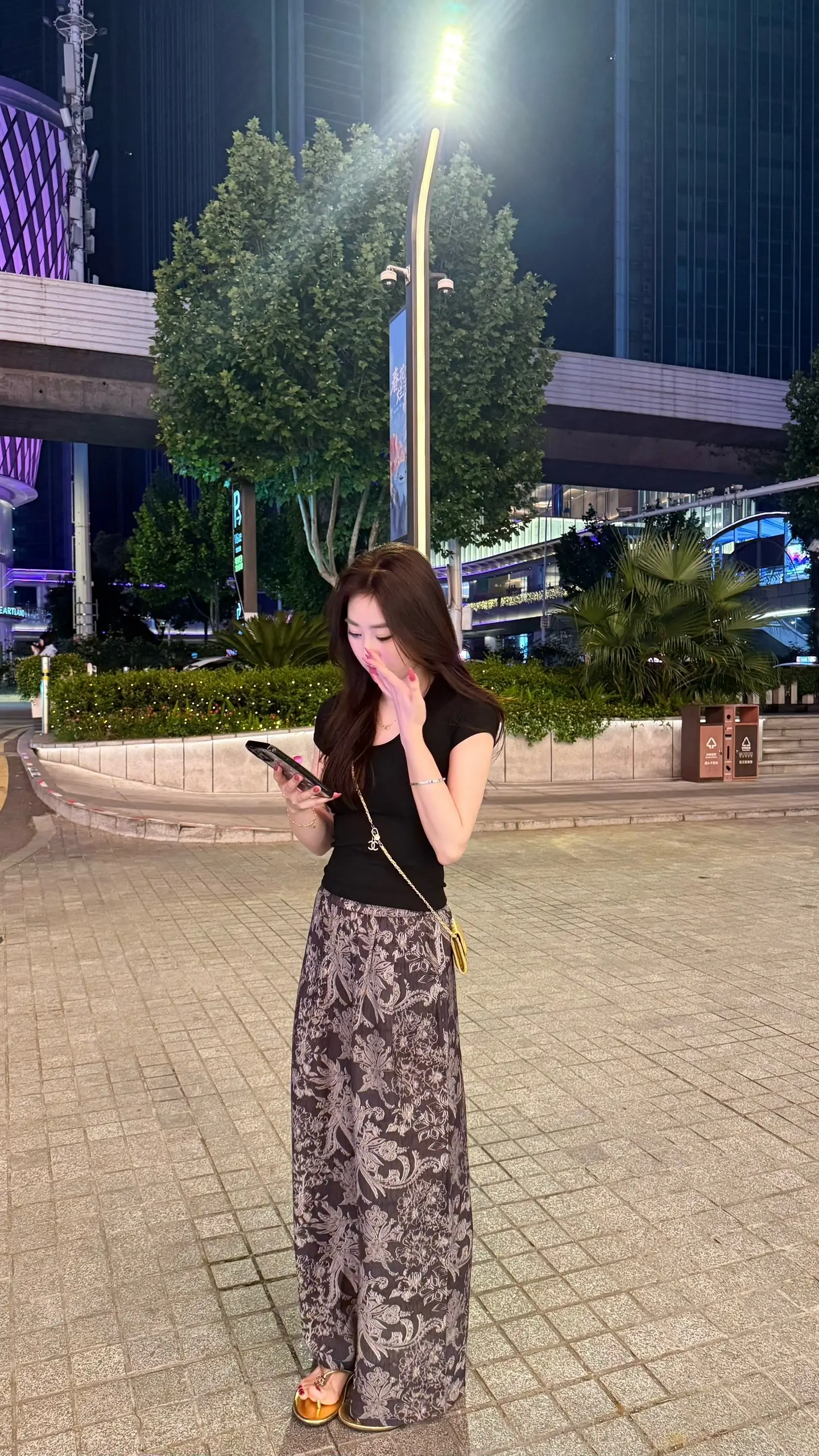 太喜欢这样的松弛感穿搭了,很简约气质!基础款白T、垂感阔腿裤、印花长裙,搭配草