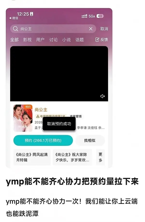 李昀锐孟子义的态度yqmr脱粉后,尚公主预约量不减反增,cpf可是号召全平台取消预约了,怎么还上涨了🤣,粉丝对剧的力量本来就是有限的,什么时候能明白 ,其实不会全靠唯粉和cp的 ,靠的是观众啊, 会去看剧的群体