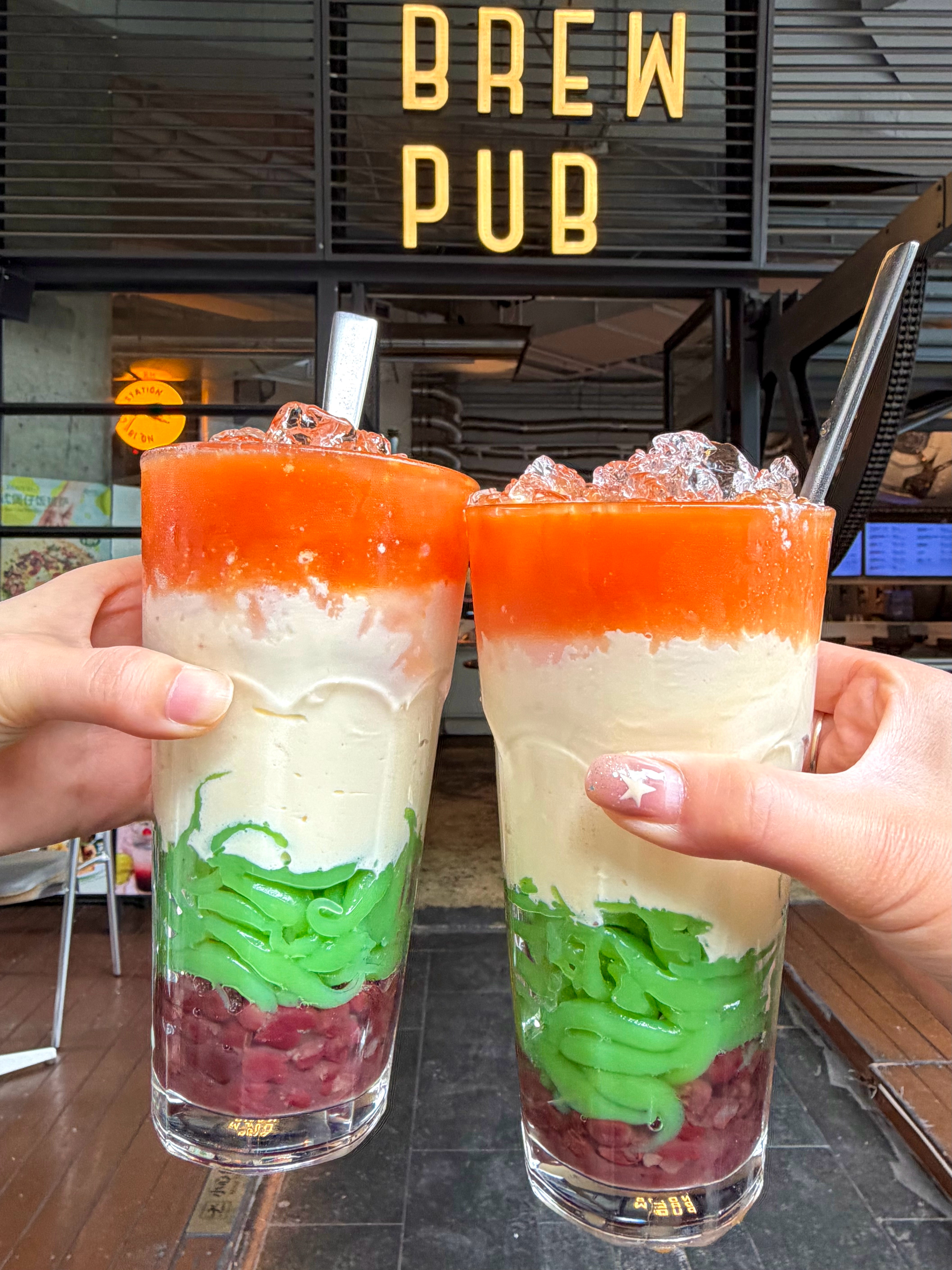 泰式咸法酪三色冰🥤漂亮的分层好诱人😍泰式红茶+咸法酪+斑斓凉虾+红豆,一口直接沦陷😭