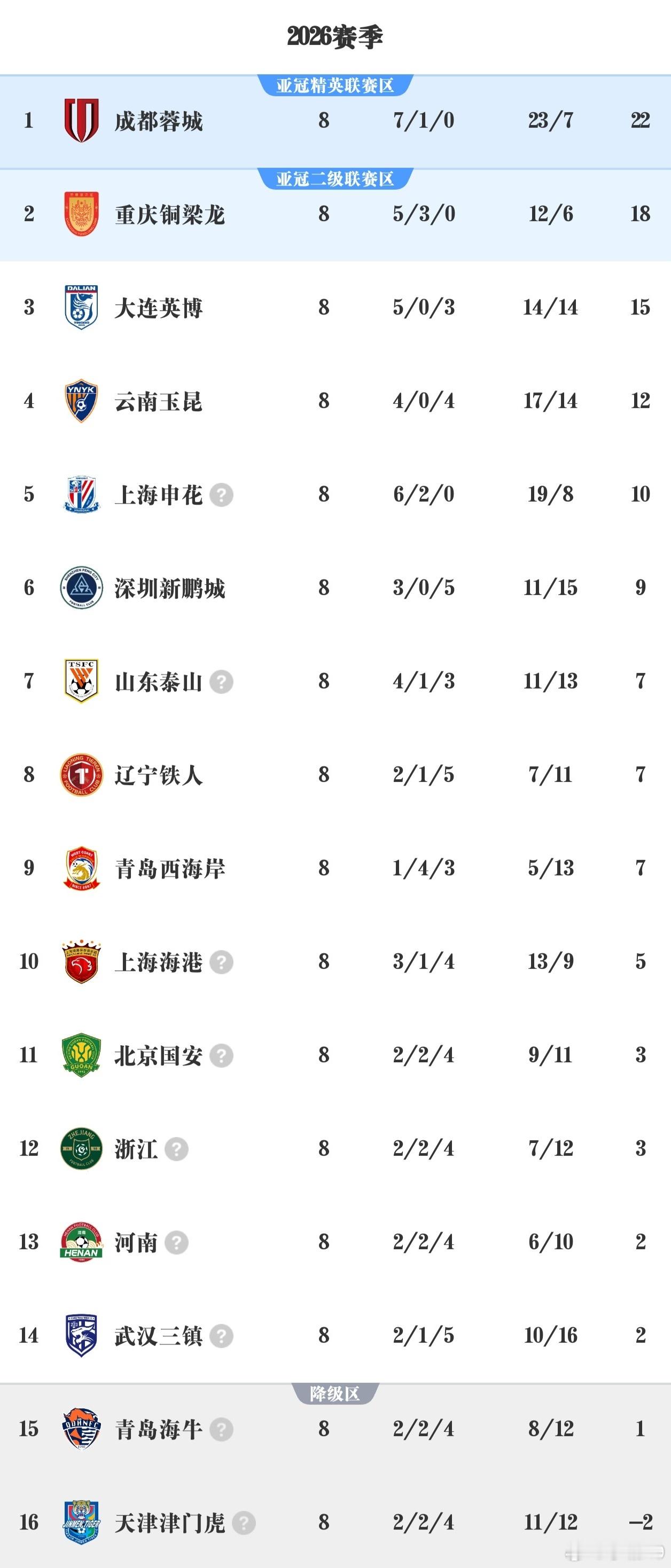第八轮之后的积分榜,左边是扣分的,右边是不扣分的。