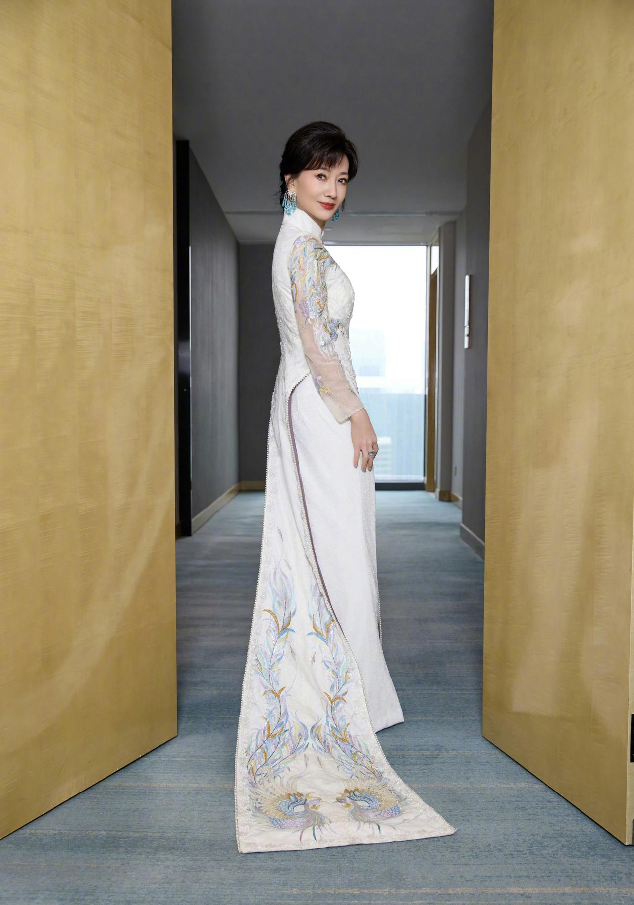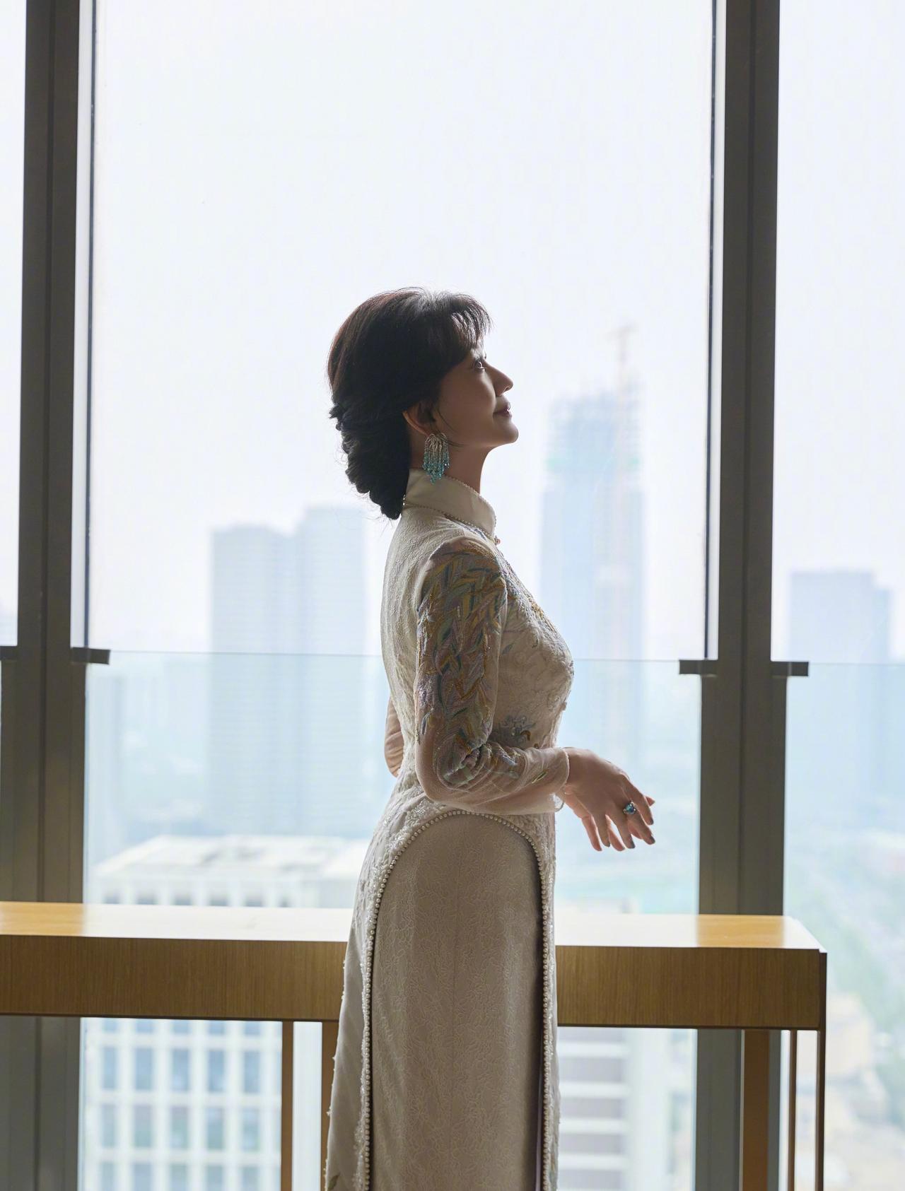 一袭凤纹旗袍,绣尽东方雅致意蕴,针脚婉转,彩线翻飞,灵动鸾凤于衣间翩然舒展,温婉发髻衬清丽眉眼,蓝玉耳坠摇曳碎光,一颦一笑,皆是历经岁月沉淀的从容温婉,古典风骨与从容气度相融,时光从不败美人,风雅自会恒久留香。