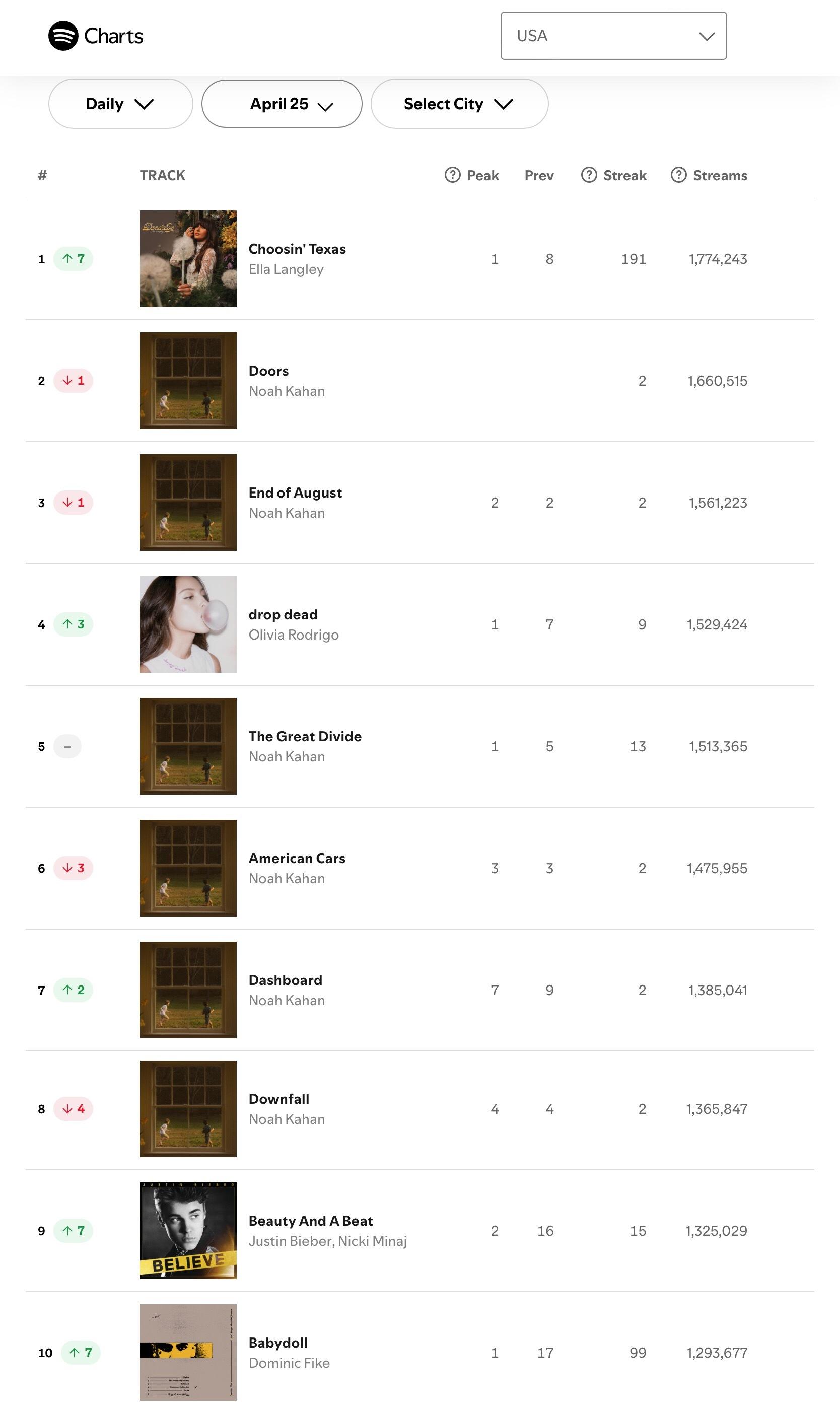【流媒速览】Spotify 全球/美区歌曲日榜(2026.04.25):