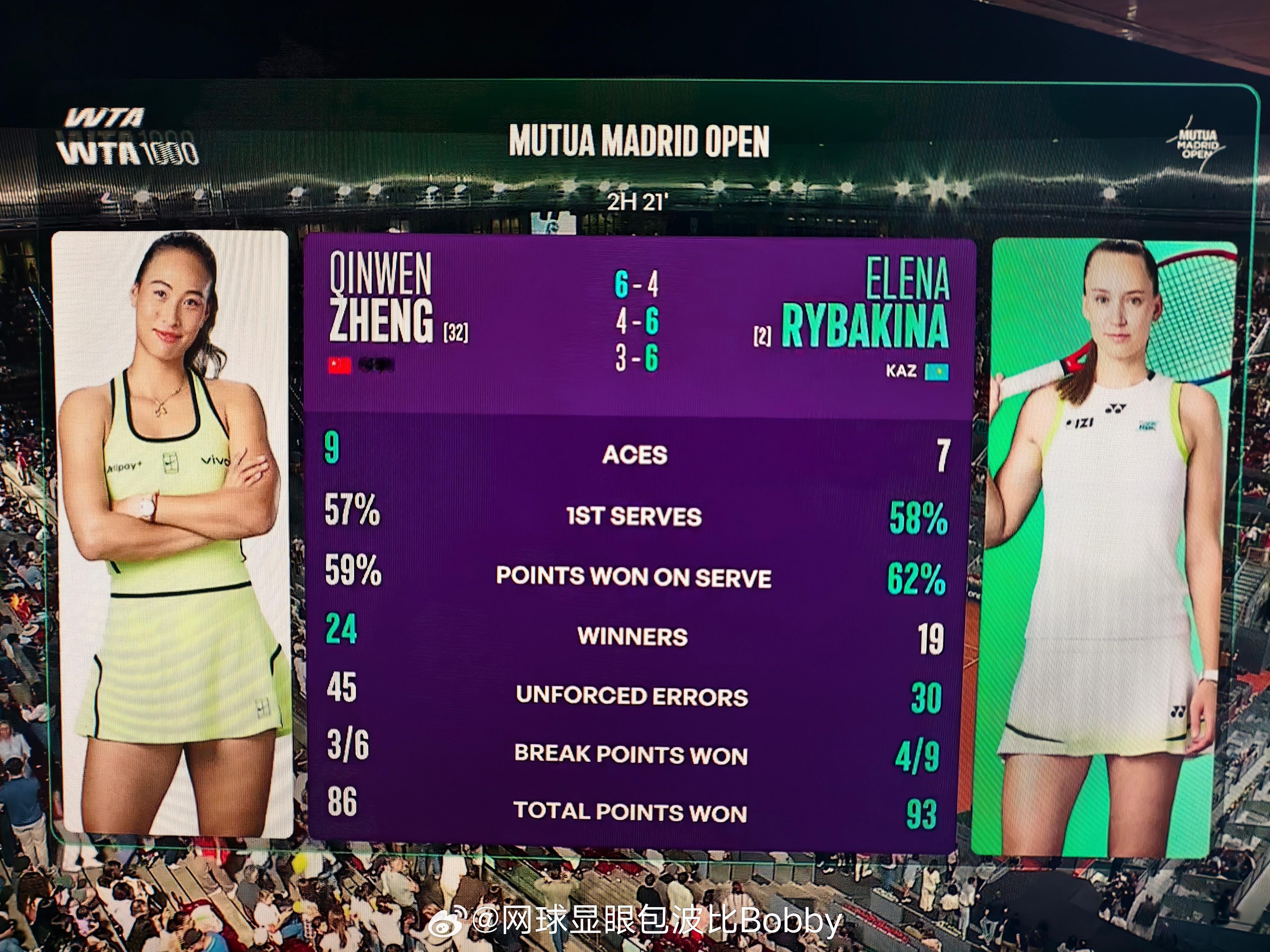 郑钦文vs莱巴金娜郑钦文马德里1比2莱巴金娜郑钦文无缘马德里赛16强