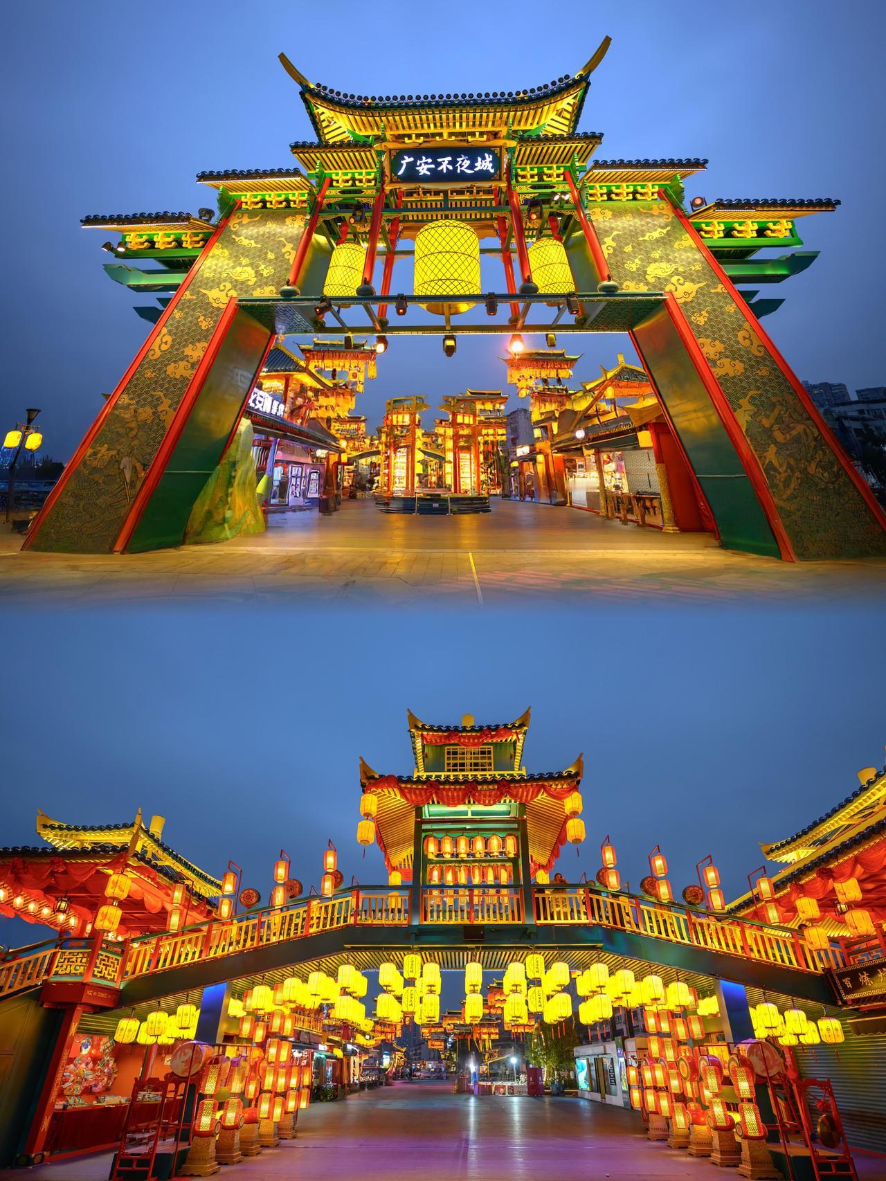 到了晚上,广安的夜景更是不容错过。广安不夜城热闹非凡,各种美食和娱乐项目让你应接不暇;广安奇妙夜充满奇幻色彩,仿佛进入了一个童话世界;賨城里古色古香,展现着广安的历史韵味。