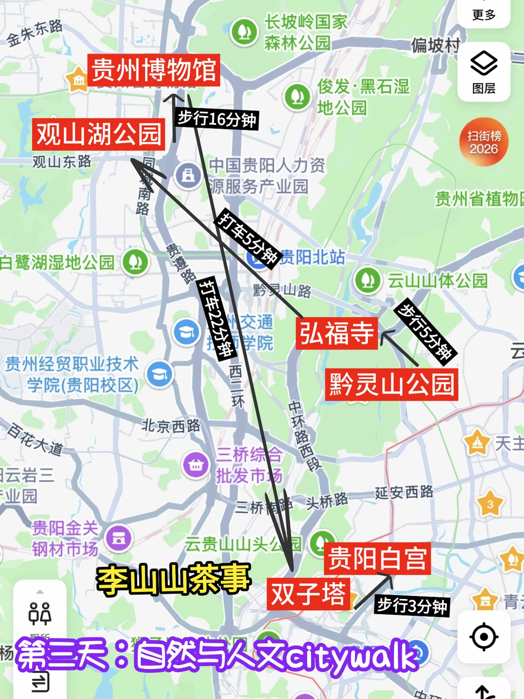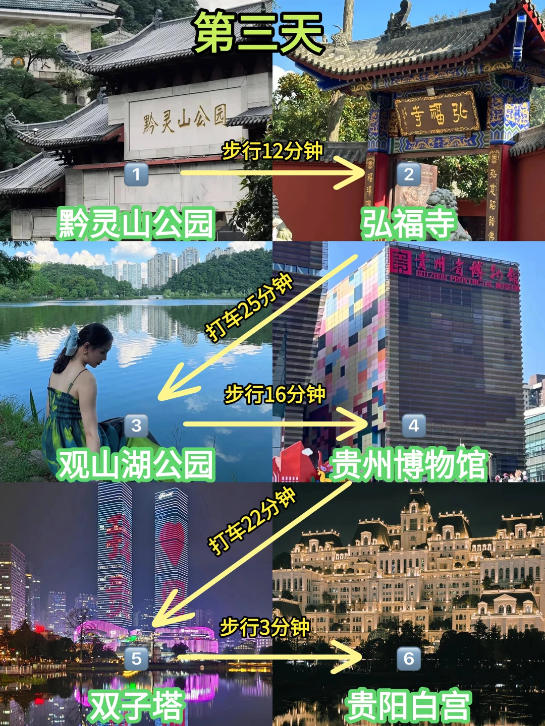 🚩路线:黔灵山公园—弘福寺—观山湖公园—贵州博物馆—双子塔—白宫