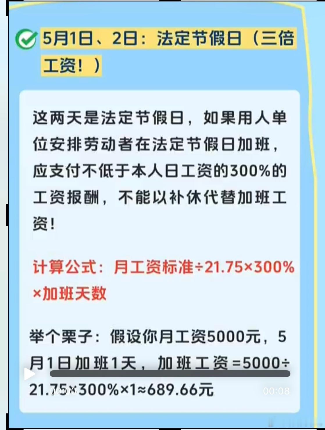 五一期间加班工资怎么算 假期坚守岗位的小伙伴注意啦!你们的工资将多一笔钱,快来看看怎么算!3倍加班工资变300元补贴
