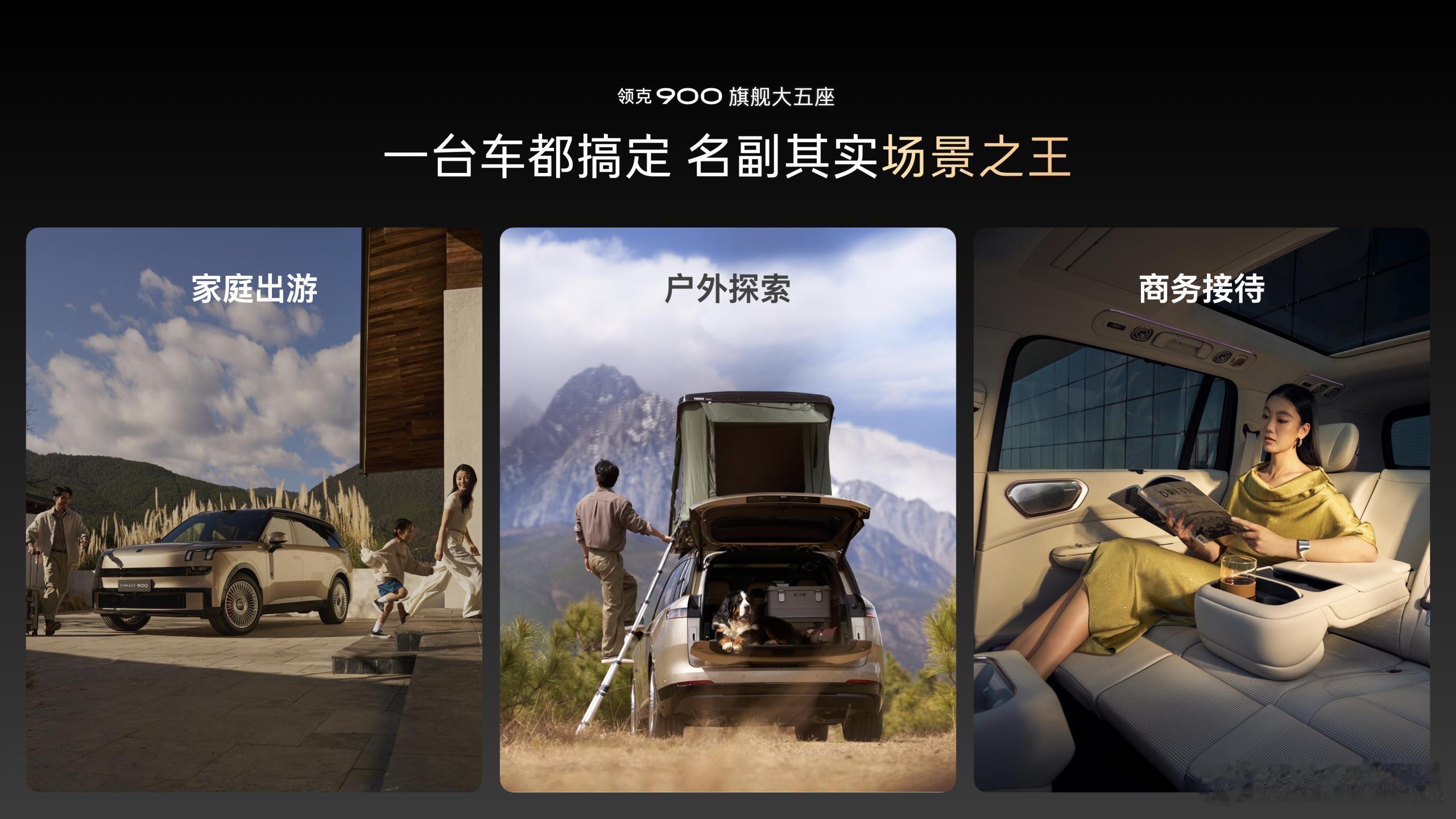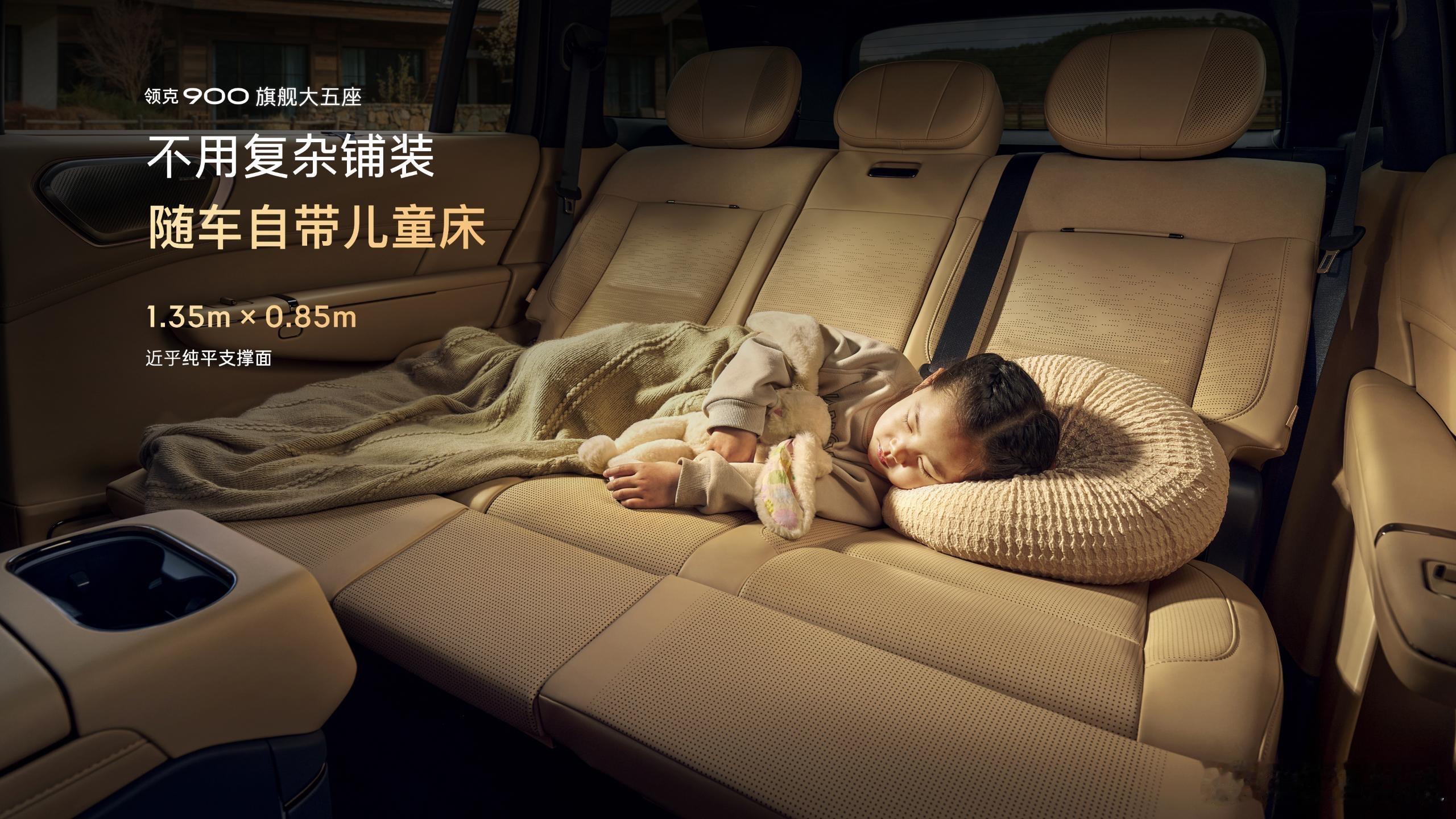领克900旗舰大五座,真正的“场景之王”。从家庭出游到户外探索,再到商务接待,一台车就能轻松搞定所有场景。全车无尴尬位,1350mm超宽座椅,五座标配加热,人人都能享受舒适。后排可秒变1.35m×0.85m的儿童床,孩子旅途也能安稳安睡。更有同级领先的9L冷暖冰箱,支持-6℃制冷与50℃保温,户外也能实现冰淇淋自由。无论是全家出行、露营探险还是商务通勤,它都能从容应对。