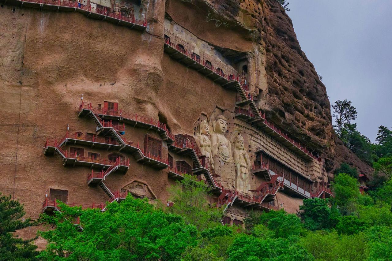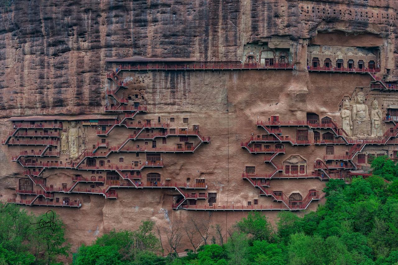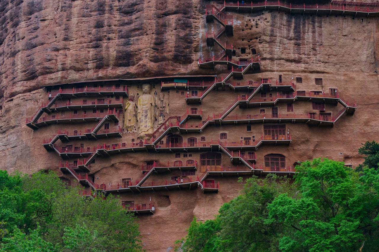 下雨天一定要来麦积山石窟感受这份奇绝!它可是最为艰险的一处,洞窟绝壁开凿,栈道凌空飞架,光是看着就让人肾上腺素飙升。