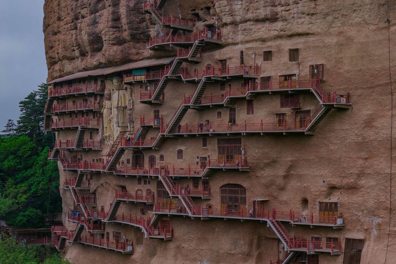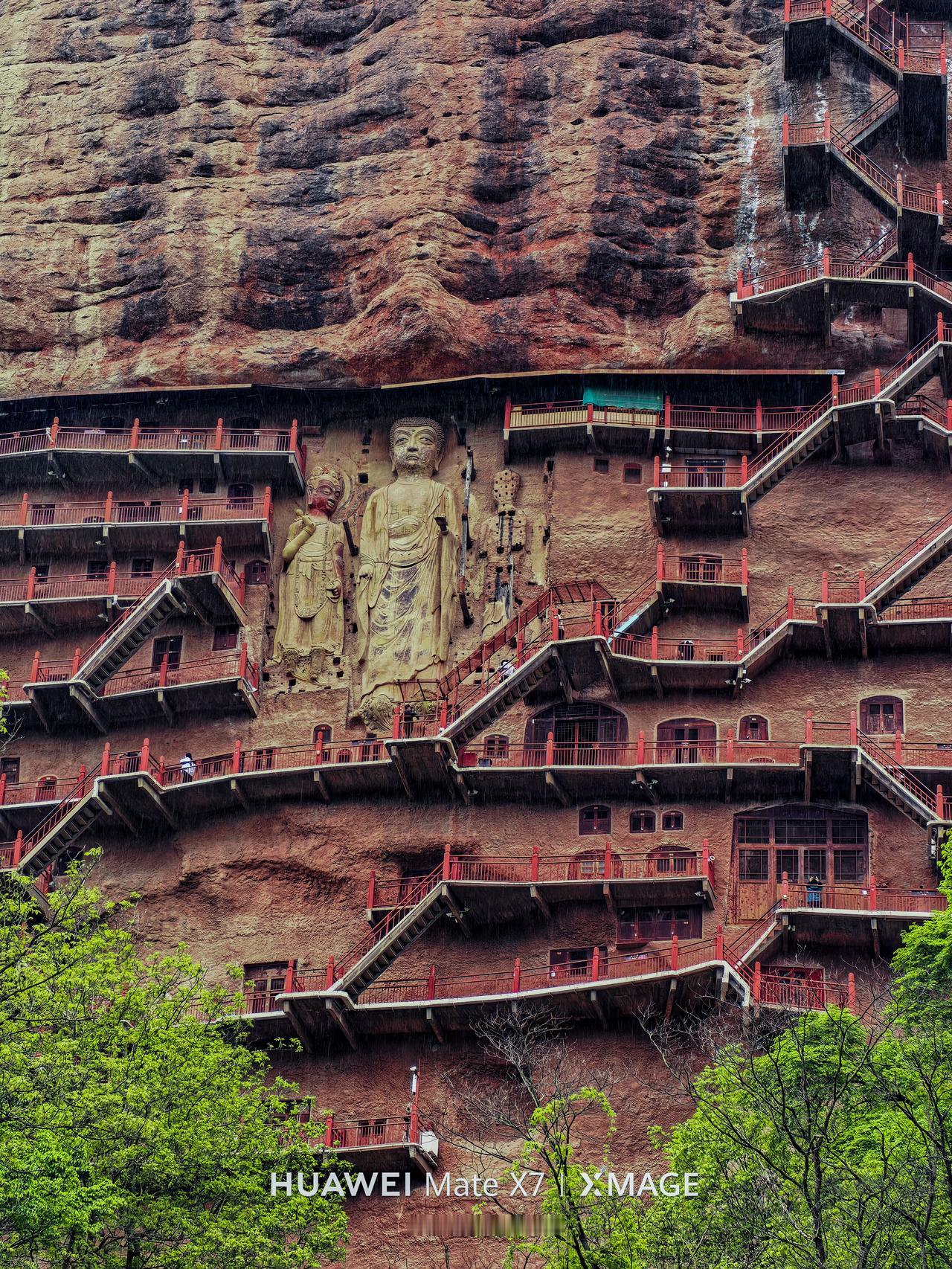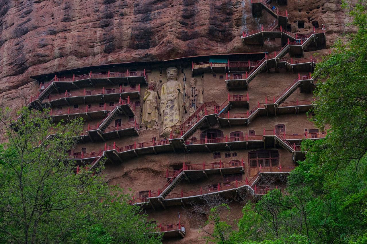 下雨天一定要来麦积山石窟感受这份奇绝!它可是最为艰险的一处,洞窟绝壁开凿,栈道凌空飞架,光是看着就让人肾上腺素飙升。