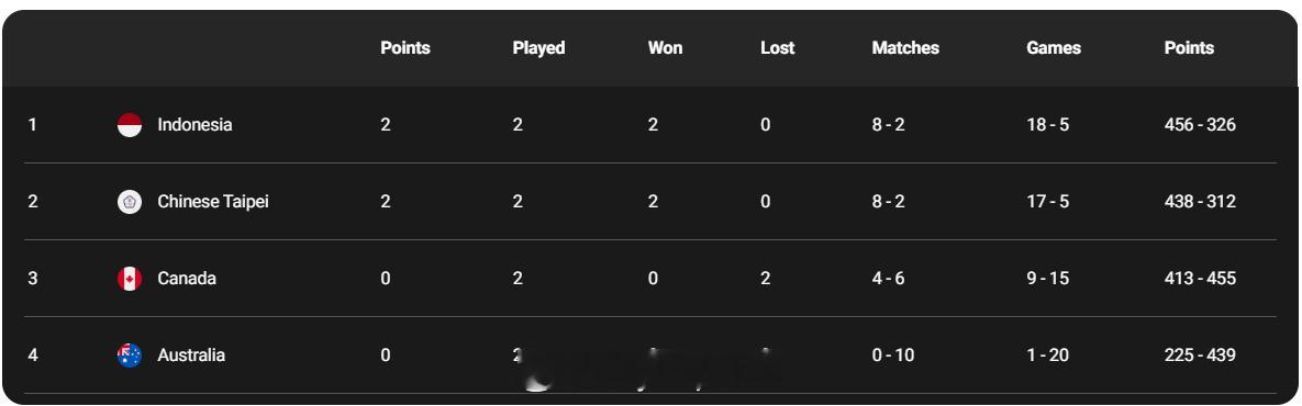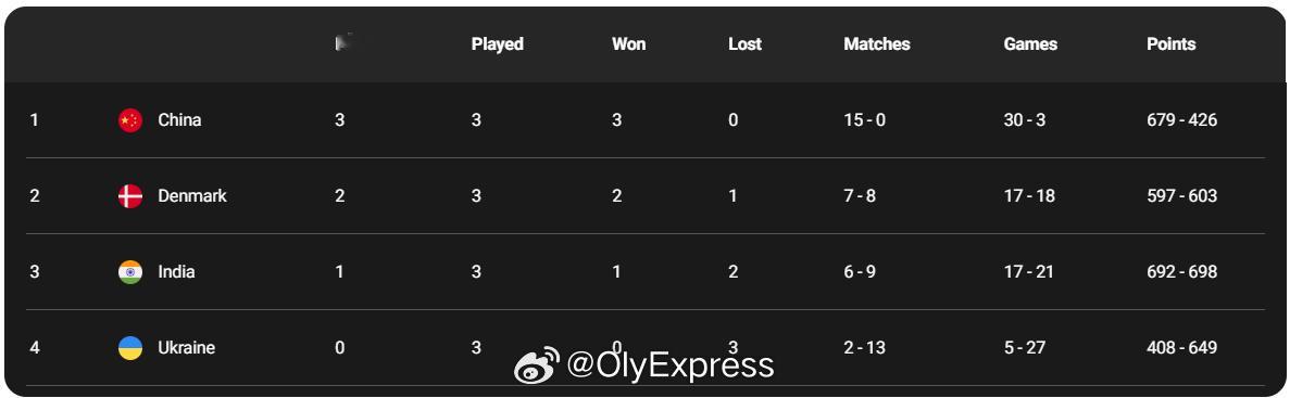 今天尤伯杯小组赛将全部结束。昨天尤杯A组和B组的小组赛已经结束,A组的中国、丹麦