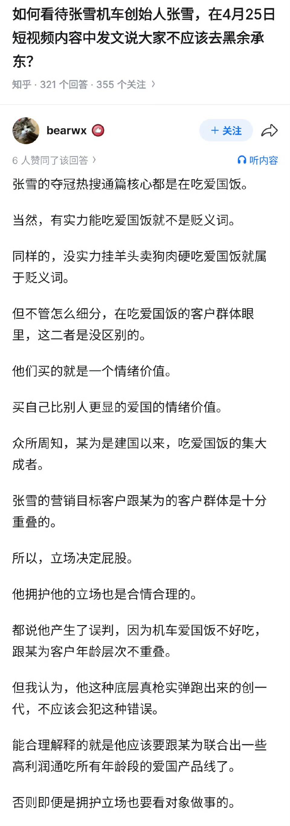 张雪声援余承东他们不是抵制爱国用营销,他们只是为了抹黑拆穿他们偶像的人抽象汽车商业评论