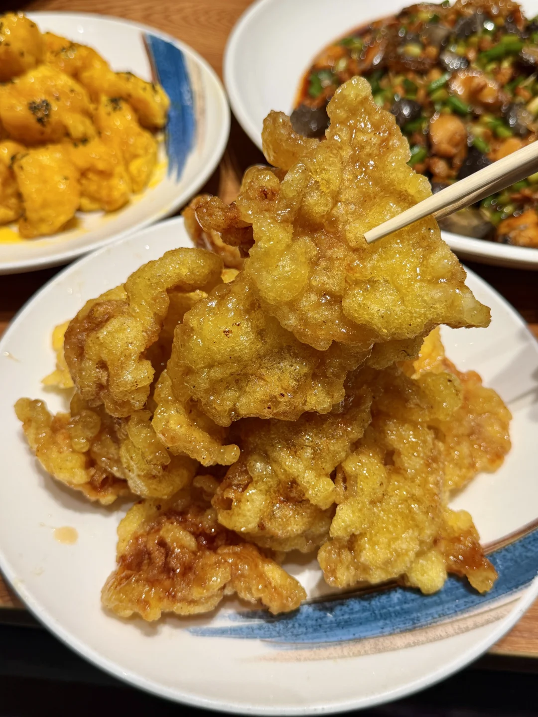 还吃到了一些创意菜!番茄锅包虾!番茄酱汁裹满虾肉,虾肉个头,外脆里嫩!酸甜酱汁很喜欢!