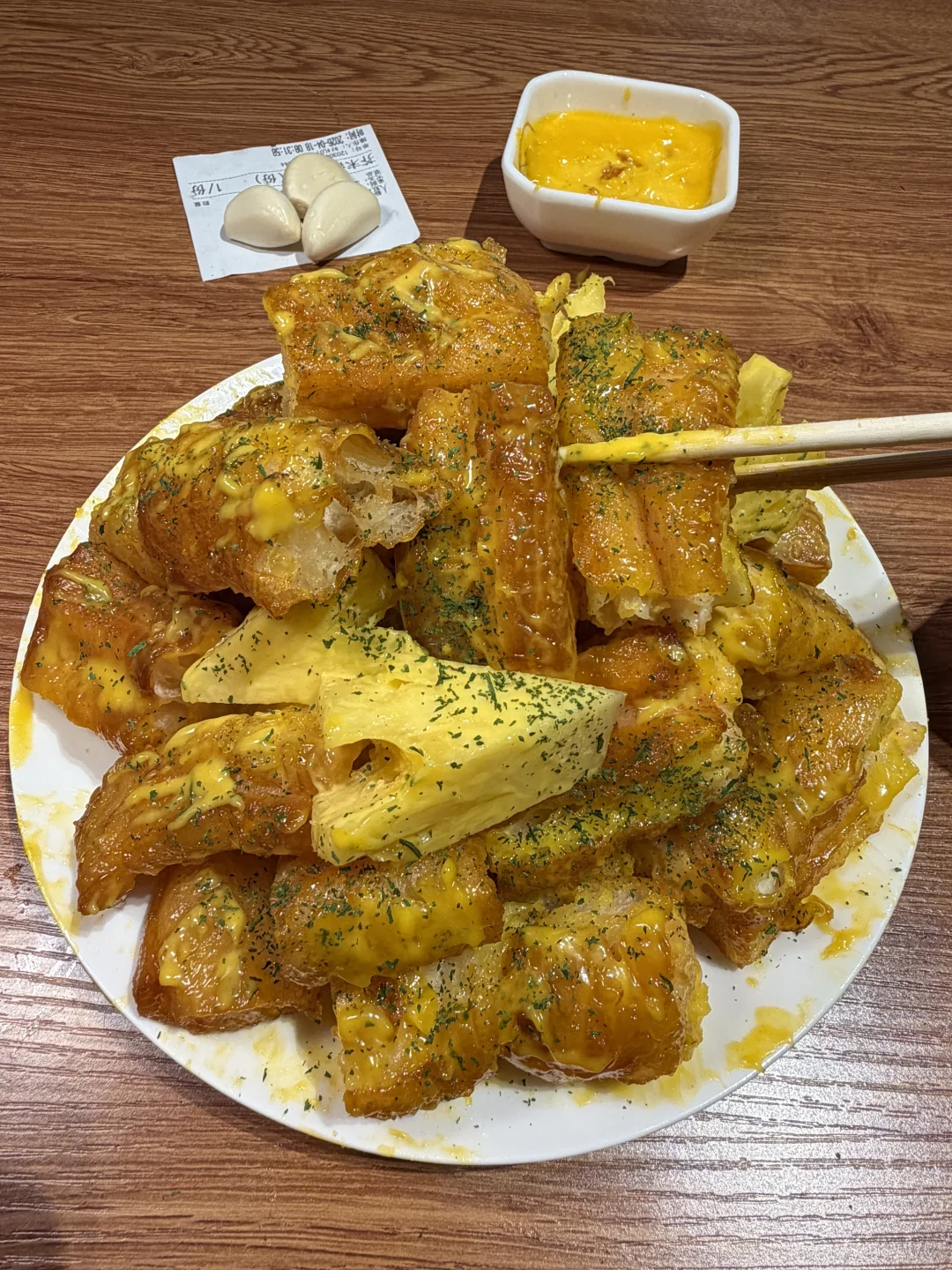 芥末油条虾滑,油条和虾仁裹满芥末酱,却很清爽!