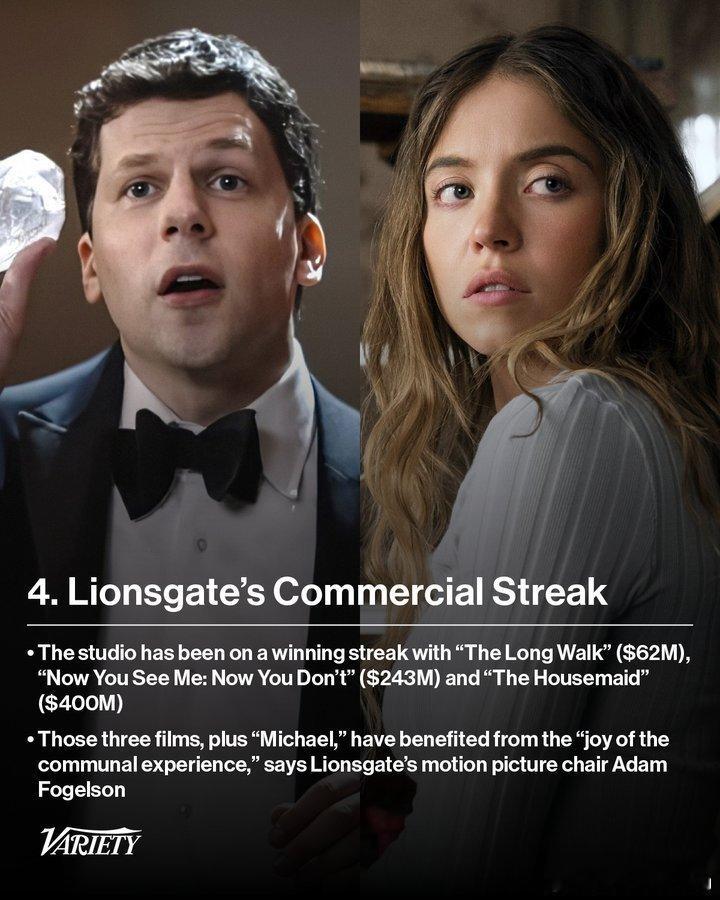 狮门影业电影部门主席 Adam Fogelson表示,这三部电影加上《迈克尔·杰克逊:巨星之路》,都受益于“集体观影体验带来的乐趣”