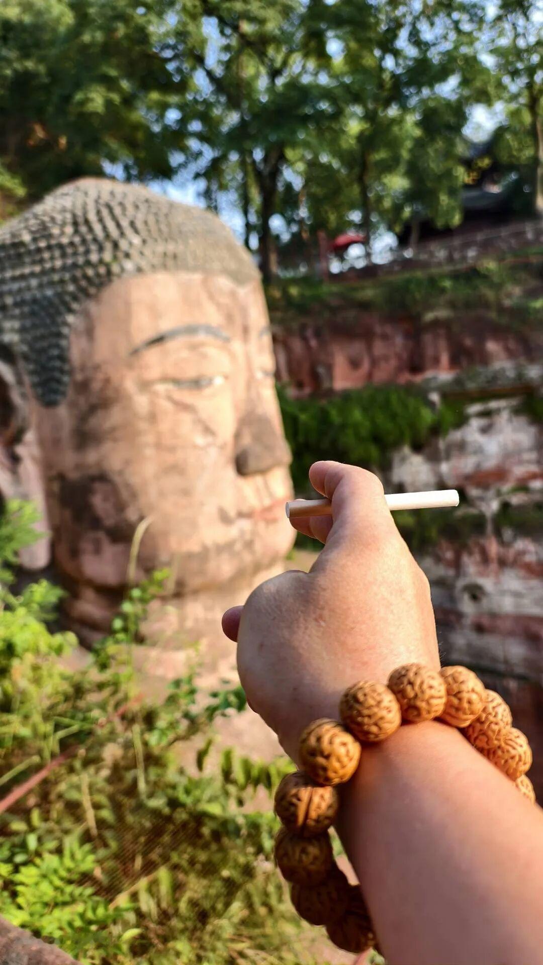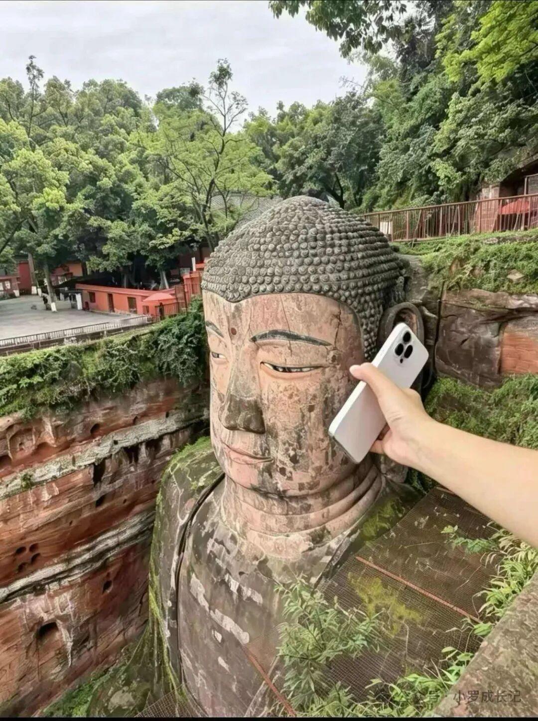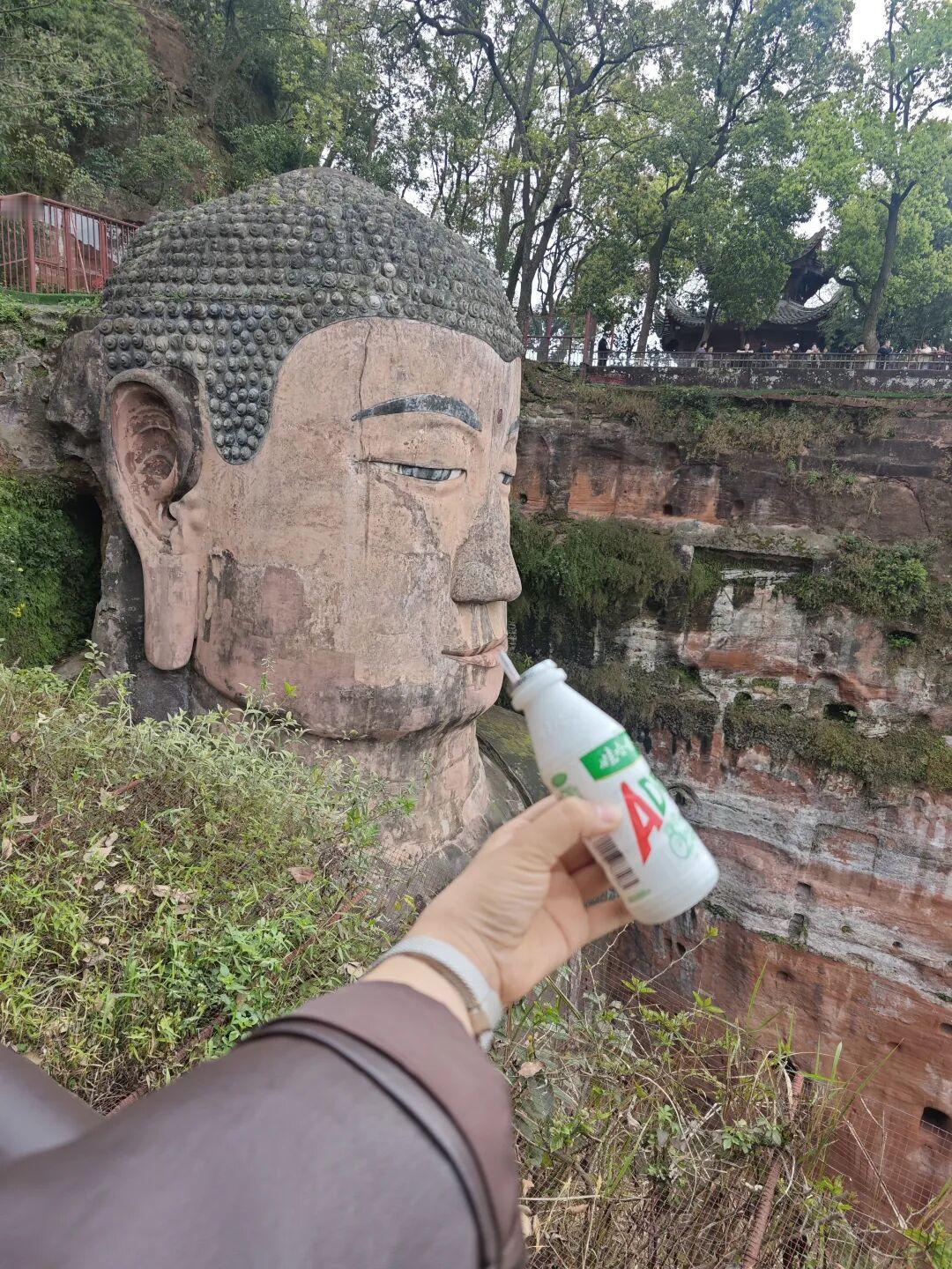 乐山大佛紧跟时代步伐抽烟电话,喝AD钙,网友这些互动封神