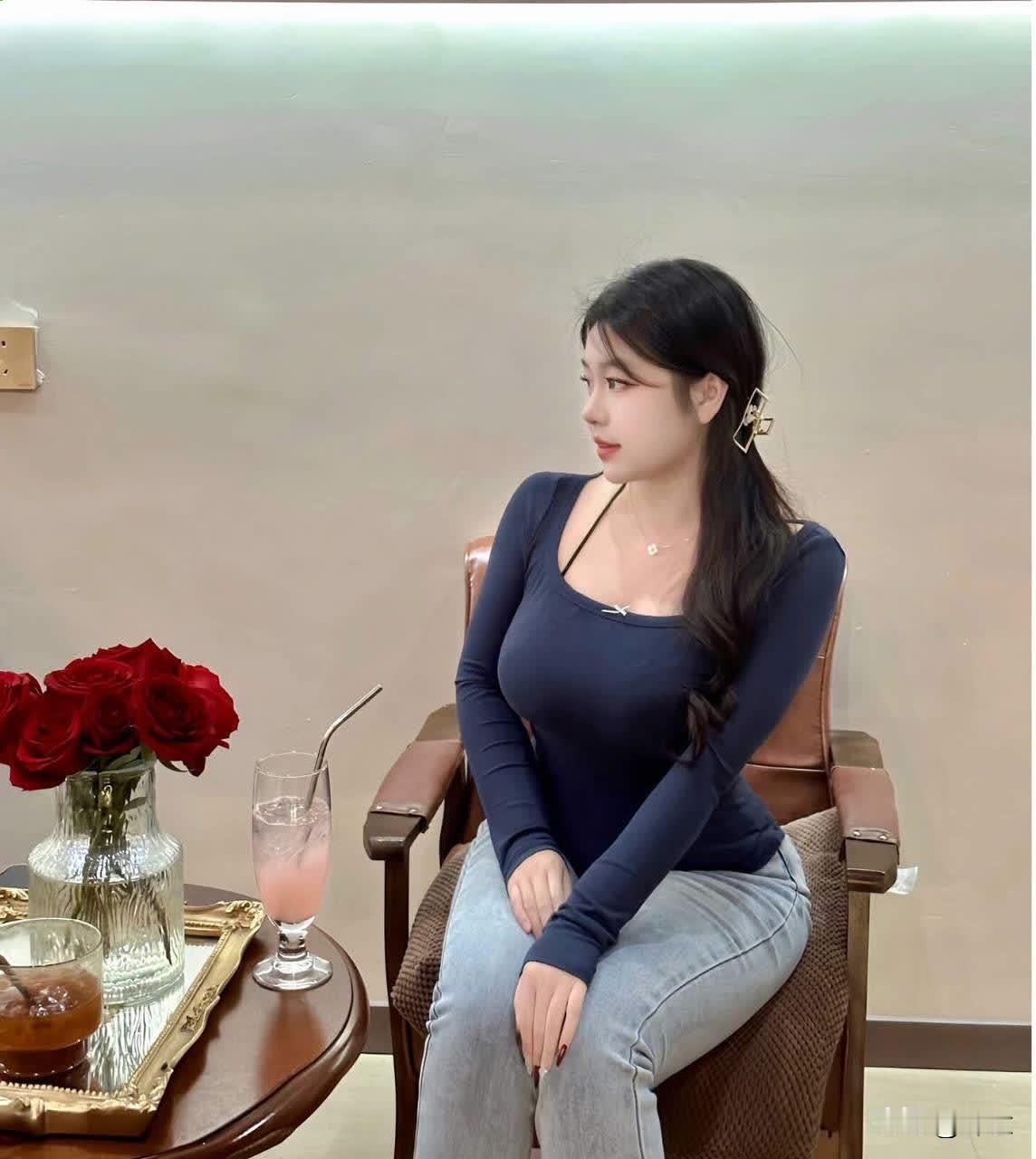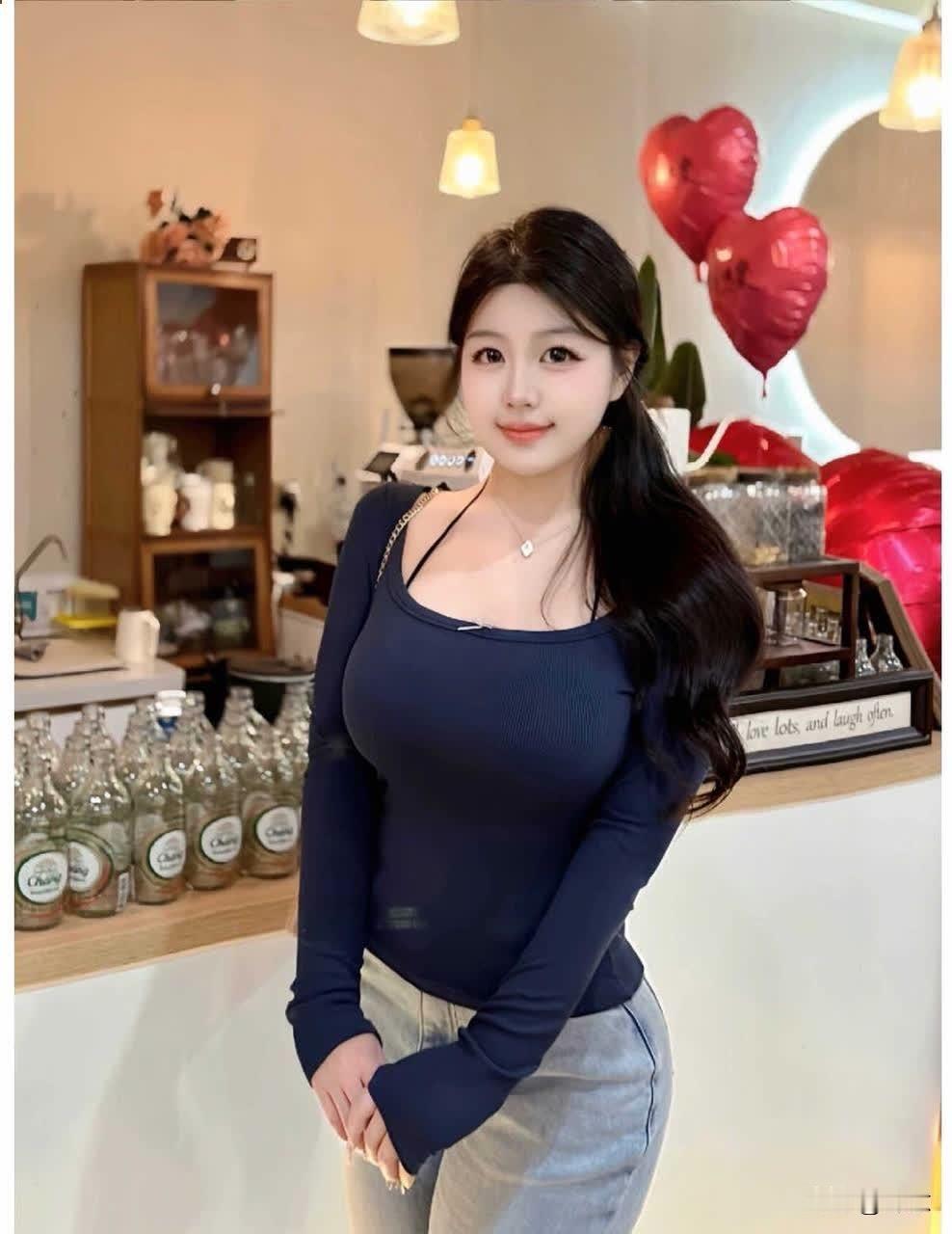 微胖女孩的魅力:蓝色上衣兜不住的满园春色,懂的举手!