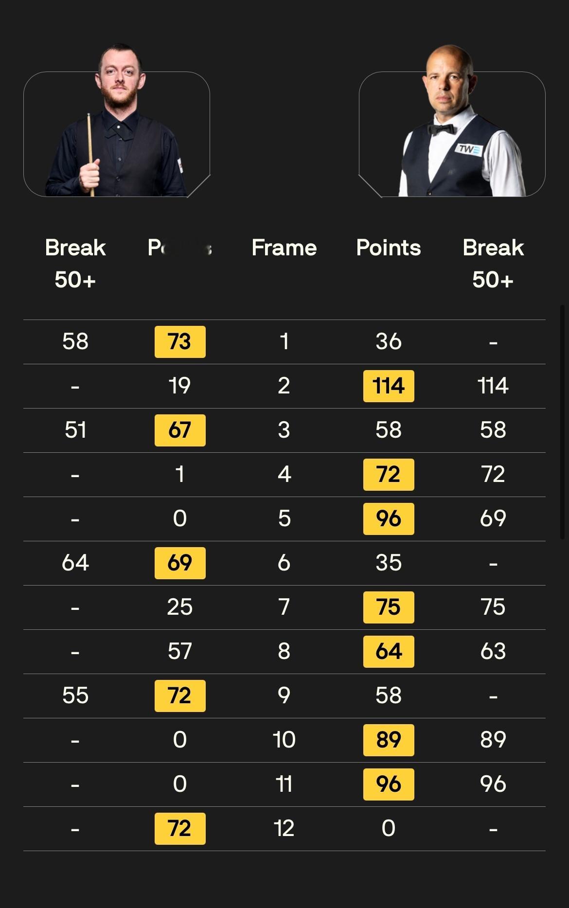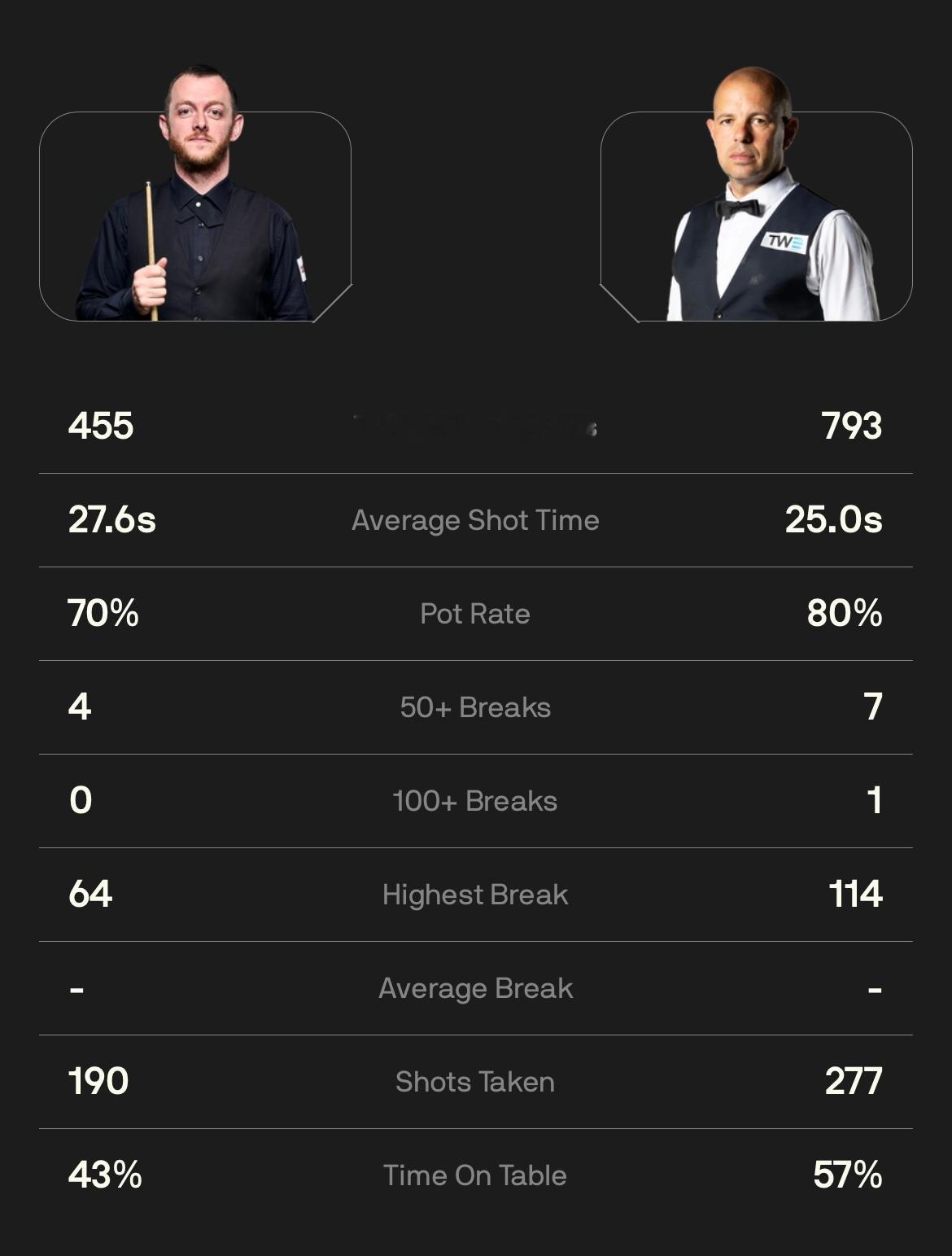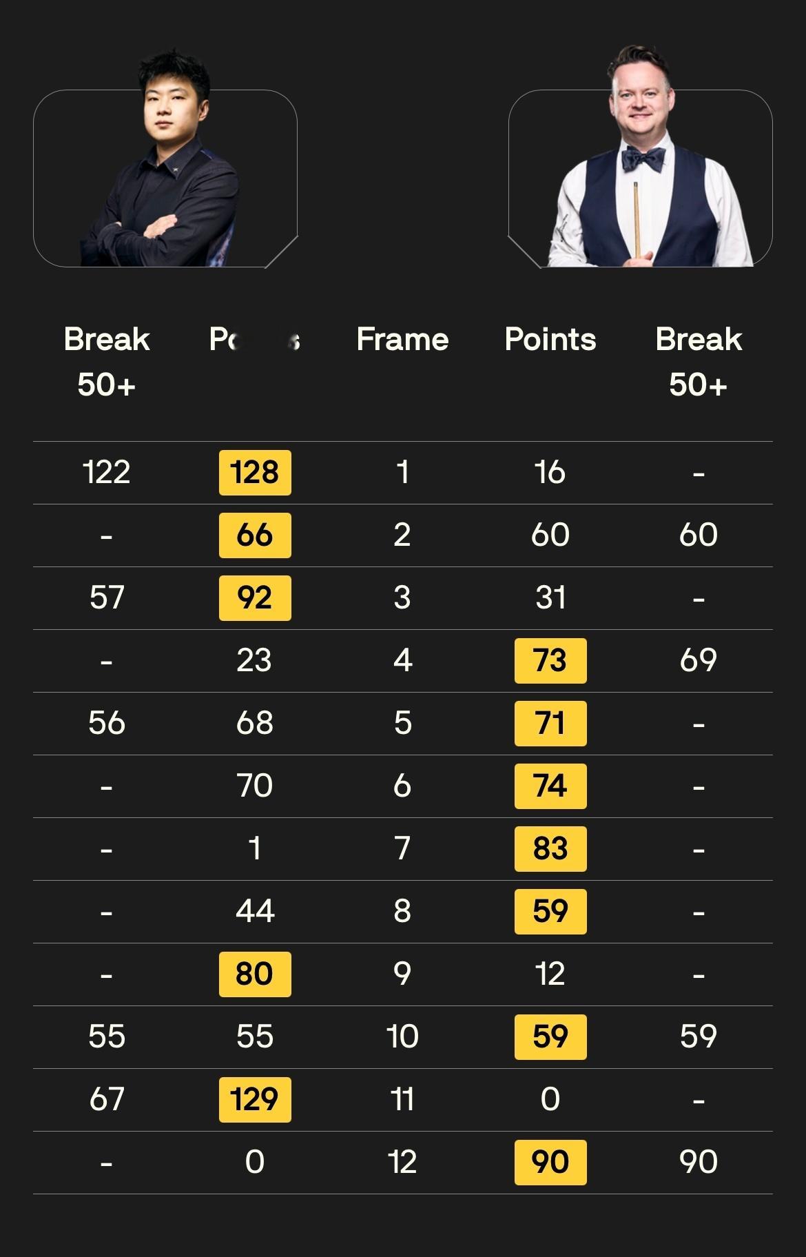 2026斯诺克世锦赛世锦赛凌晨两点场次两桌第二阶段中场短休比分: