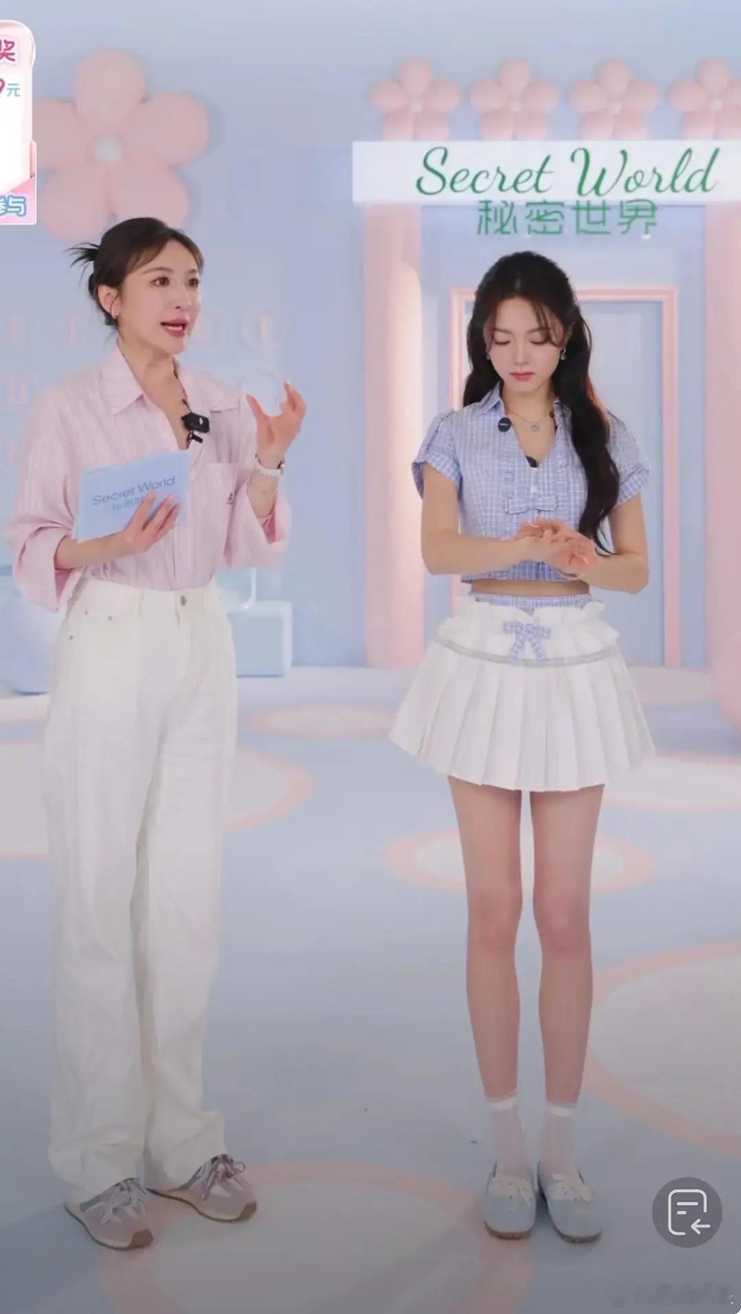 直播间里的赵今麦这个腿都被快拉长成电线杆了