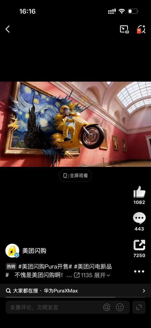 美团闪购Pura开售美团闪电新品这剧情我以为是飞驰人生4把 AI 科技揉进艺术创作里,美团闪购这波操作太有水平,不刻意不生硬,和华为、央美的联动自然又高级。
