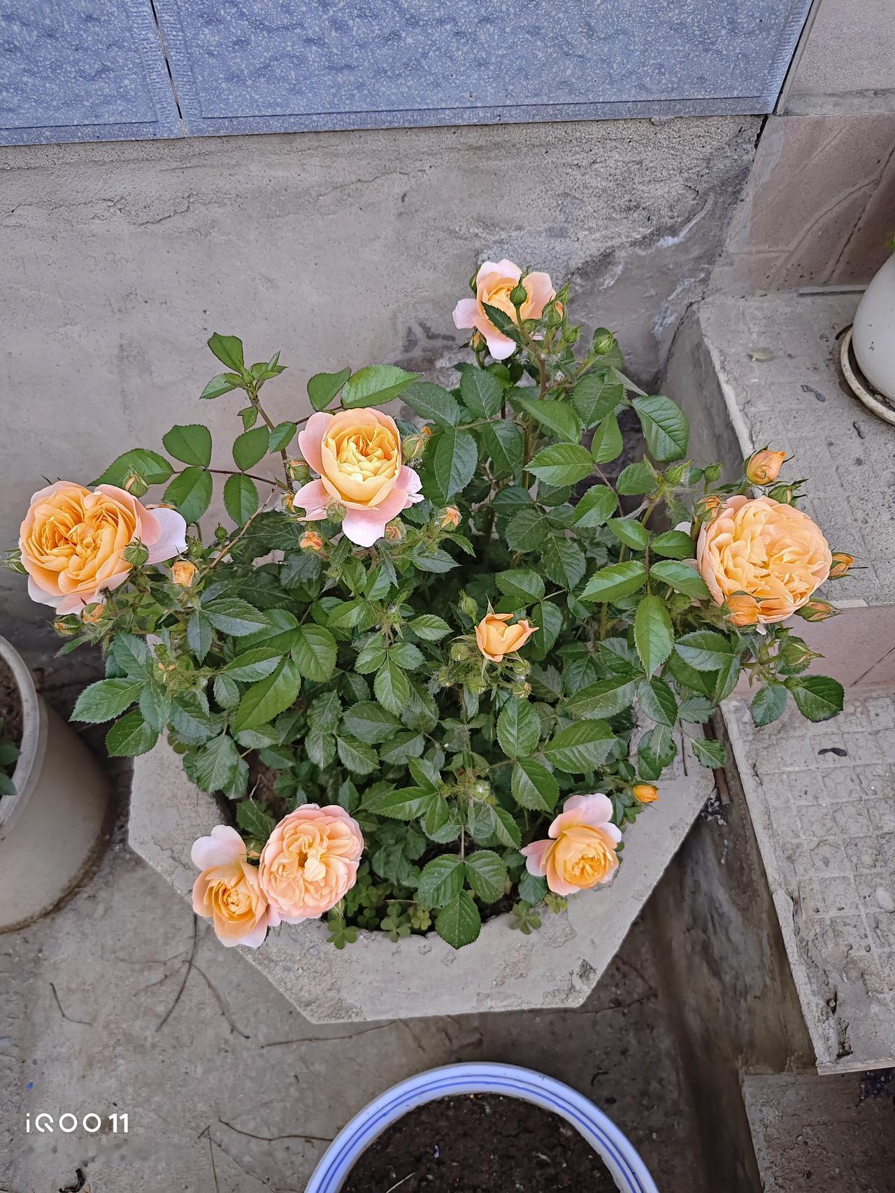 去年就开爆了花,只是有些弱,苗也有些小。去年冬季又做了重剪,等于给了一茬肥,今年果汁阳台长得特别肥壮,也开始开花了,花苞还有很多,相信不久就会开爆盆!