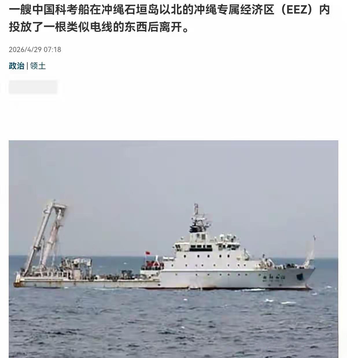 日本气急败坏疯狂抗议!4月29日,日本《产经新闻》披露一则敏感消息,日本海上保安厅正式证实:29日凌晨零点20分,此前长期停留在冲绳石垣岛以北海域的中国海洋科考船,平稳驶离相关海域。