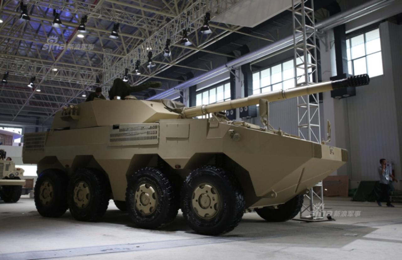 该炮由中国北方工业研发,外贸型号,采用 VN-1(ZBL-09)改进型 8×8 轮式底盘,全重约 23 吨,公路时速 100 公里,具备两栖浮渡能力。主炮为 105 毫米低后坐线膛炮,备弹 30 发,射速 6 发 / 分,可发射国产及北约制式弹药,含尾翼稳定脱壳穿甲弹、破甲弹、杀爆弹,还能打射程 5 公里的 105 毫米炮射导弹。