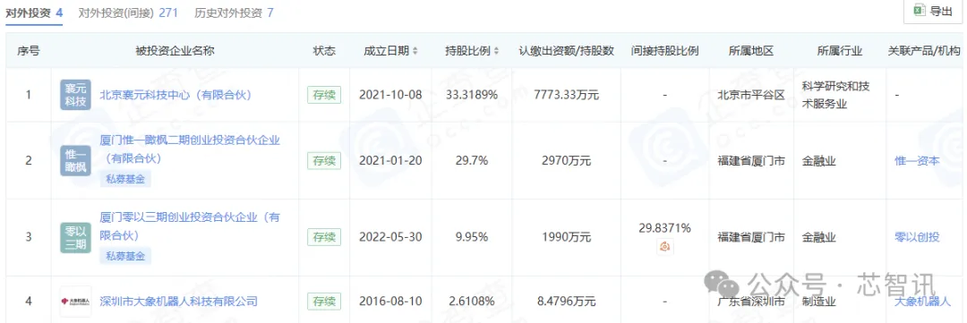 此外,朱一明还持有清辉懿德(湖州)创业投资合伙企业(有限合伙)99%股权,并通过该公司直接投资了深圳大象机器人科技有限公司,间接投资了深圳市宝链人工智能科技有限公司、上海如身机器人科技有限公司等众多的科技公司。