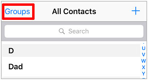 步骤 1. 在 iPhone 上打开“通讯录”应用,然后单击左上角的“群组” 。