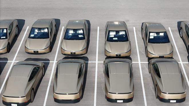 从多台车辆的内部可以看到白色座椅,而且大部分车辆都装有清晰可见的方向盘。由此判断,这批车辆并非2024年亮相时那款完全取消方向盘的最终量产版,早期车型很可能正在进行新功能验证测试,为后续在全美开展自动驾驶出租车实际运营做准备。