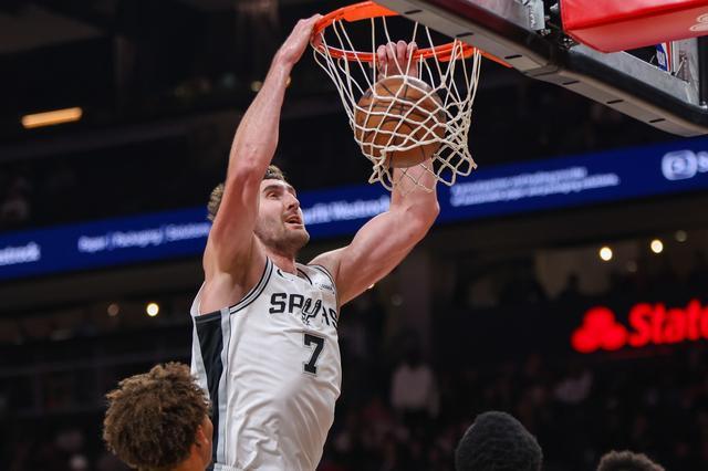 在这场击溃76人的比赛中,年轻后卫卡斯尔的发挥无疑是全队最耀眼的亮点之一。在仅有的31分钟出场时间里,卡斯尔将个人的进攻梳理与得分能力完美结合。他全场13投6中,三分线外2投1中,罚球6罚全中,高效砍下19分。更令人惊喜的是他在组织与防守端的全面表现,他不仅抢下了10个篮板,还送出了高达13次助攻,并附带2次抢断,以一份19分10篮板13助攻的“三双”数据单,完美撑起了球队的后场体系。主帅米奇·约翰逊对他赞赏有加,这位年轻核心的成长轨迹,正是马刺本赛季能够完成蜕变的缩影。