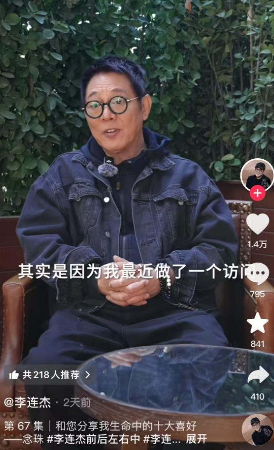 他的手上还有好几串珠子,他在视频中说,自己最喜欢的十件事里面,就有念珠。