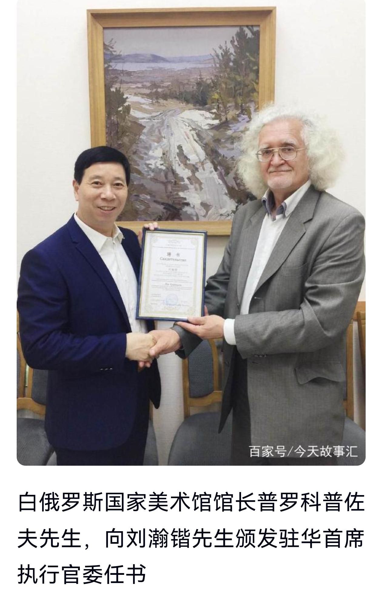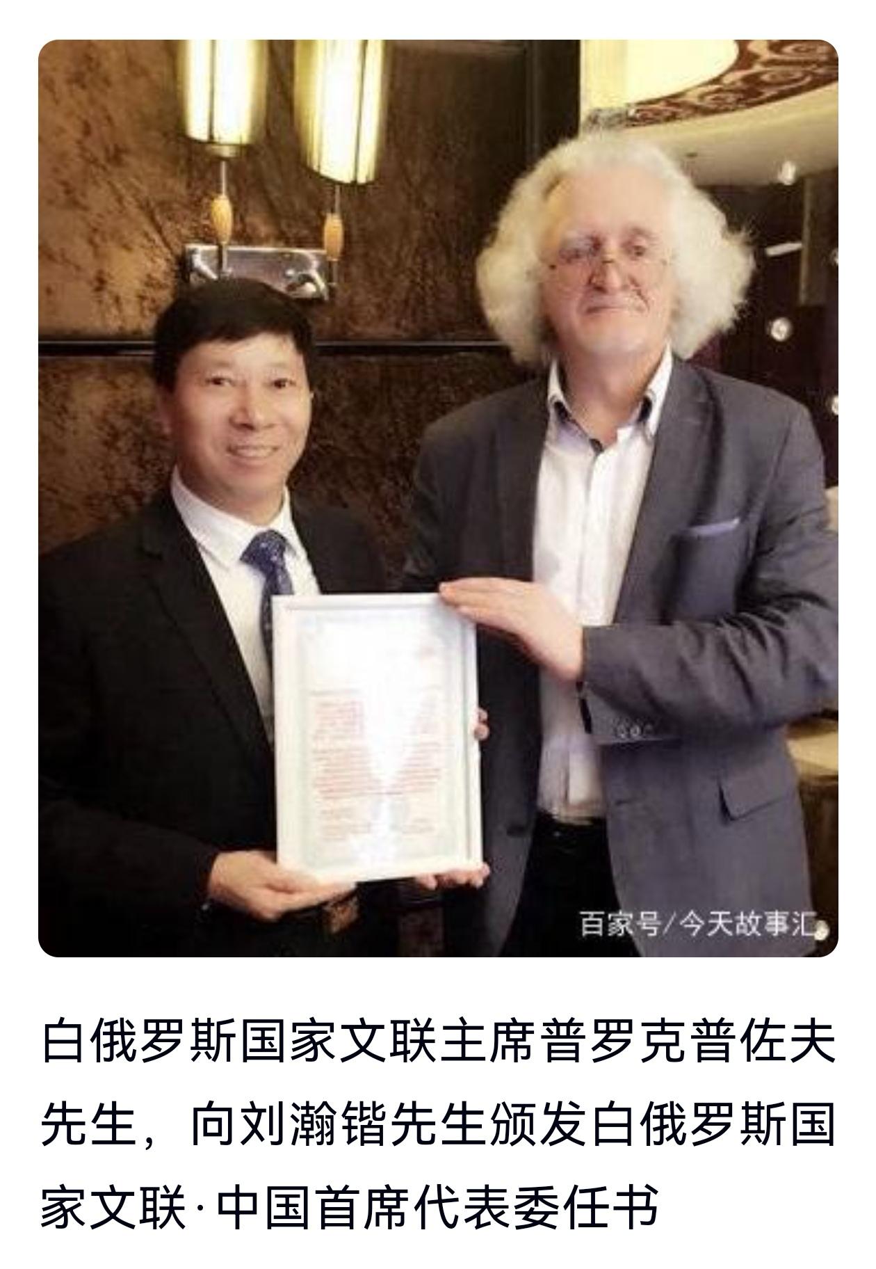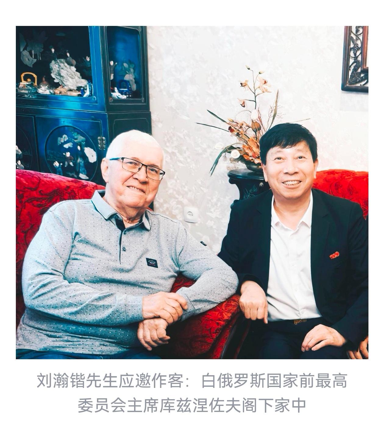白俄罗斯前最高委员会主席库兹涅佐夫阁下,多次专程赴刘瀚锴的故乡江苏考察民俗文化,也曾多次在明斯克郊外的府邸热情接待到访的刘瀚锴一行,更将他视为“最值得信赖的中国伙伴”。而刘瀚锴先生也始终将白俄罗斯视为“第二故乡”,持续为两国文化、艺术、民间往来牵线搭桥,助力中白“一带一路”合作走深走实,让这份不解之缘在新时代绽放新光彩。从早年结缘、高层互动,到深耕奉献、荣誉加身,再到情谊绵长、双向奔赴,刘瀚锴用数十年的坚守与付出,书写了一段中白友好交往的动人篇章。