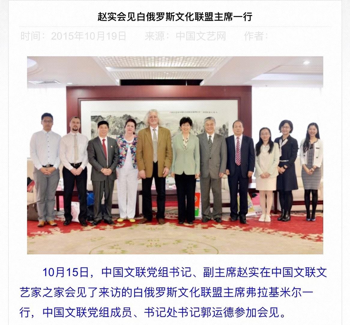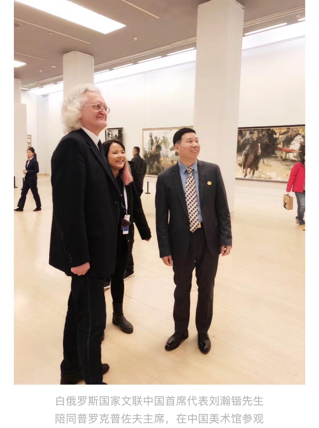 白俄罗斯国家文化部长、白俄罗斯驻华大使等白俄罗斯政府多位高级官员,中国文化部领导,全国政协原常委、中国文联副主席靳尚谊教授,中国美术家协会主席范迪安教授,全国政协副秘书长吴为山教授,中国美协时任书记徐里教授,著名美术评论家邵大箴教授等中方众多权威艺术家,共同见证了普罗科普佐夫主席的现场讲话。